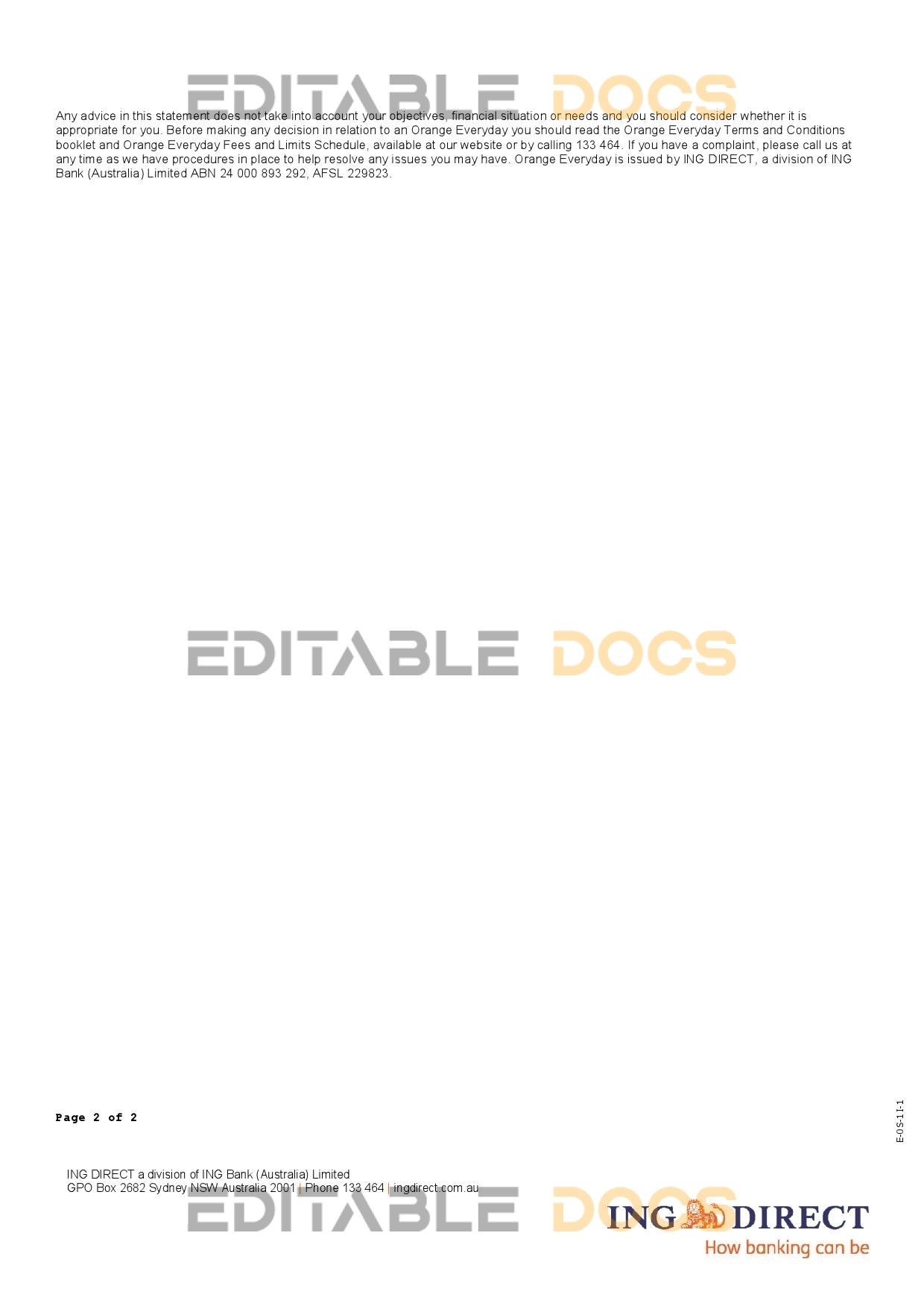 Once you make your purchase, you’ll be able to immediately download the Australia ING Direct bank statement.doc file and fonts.