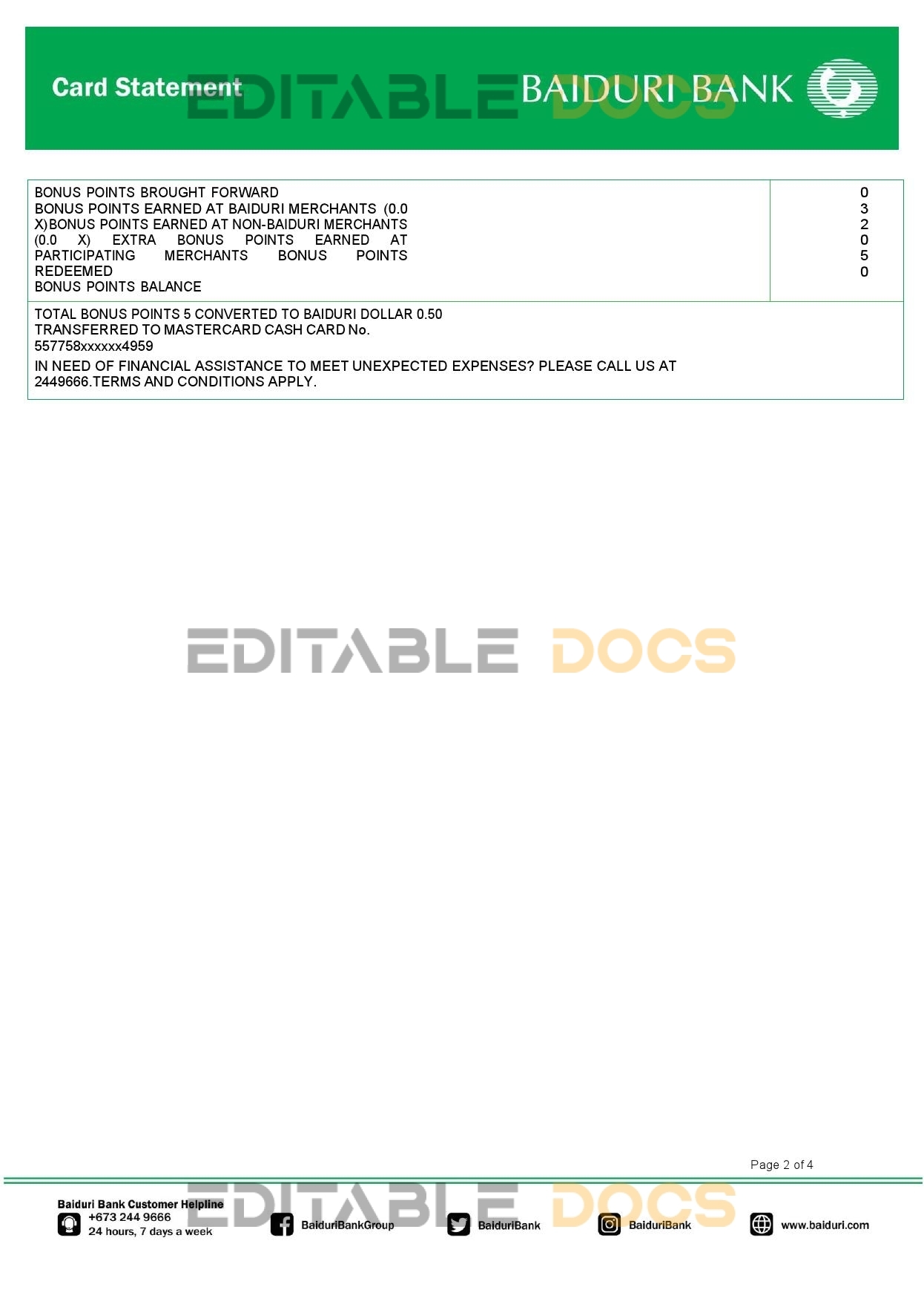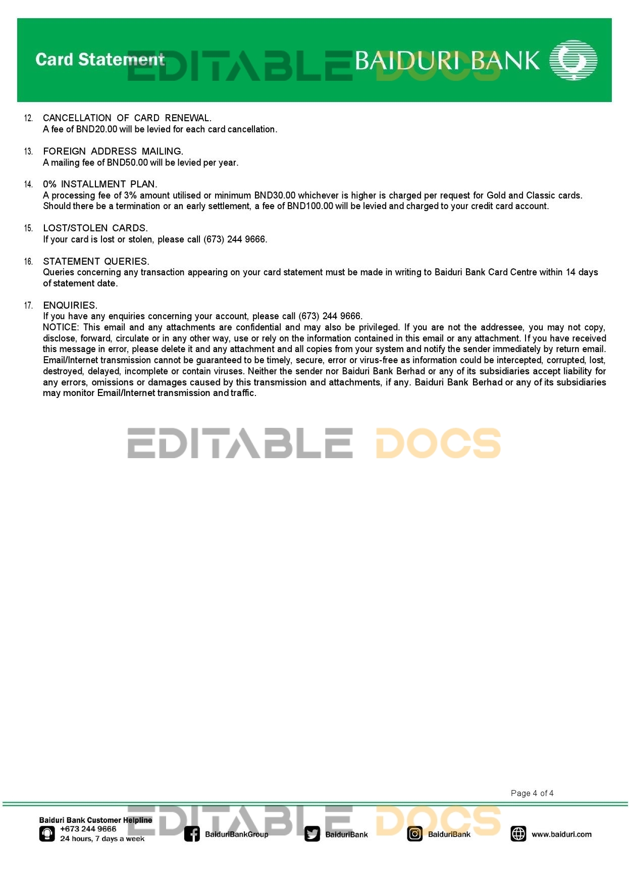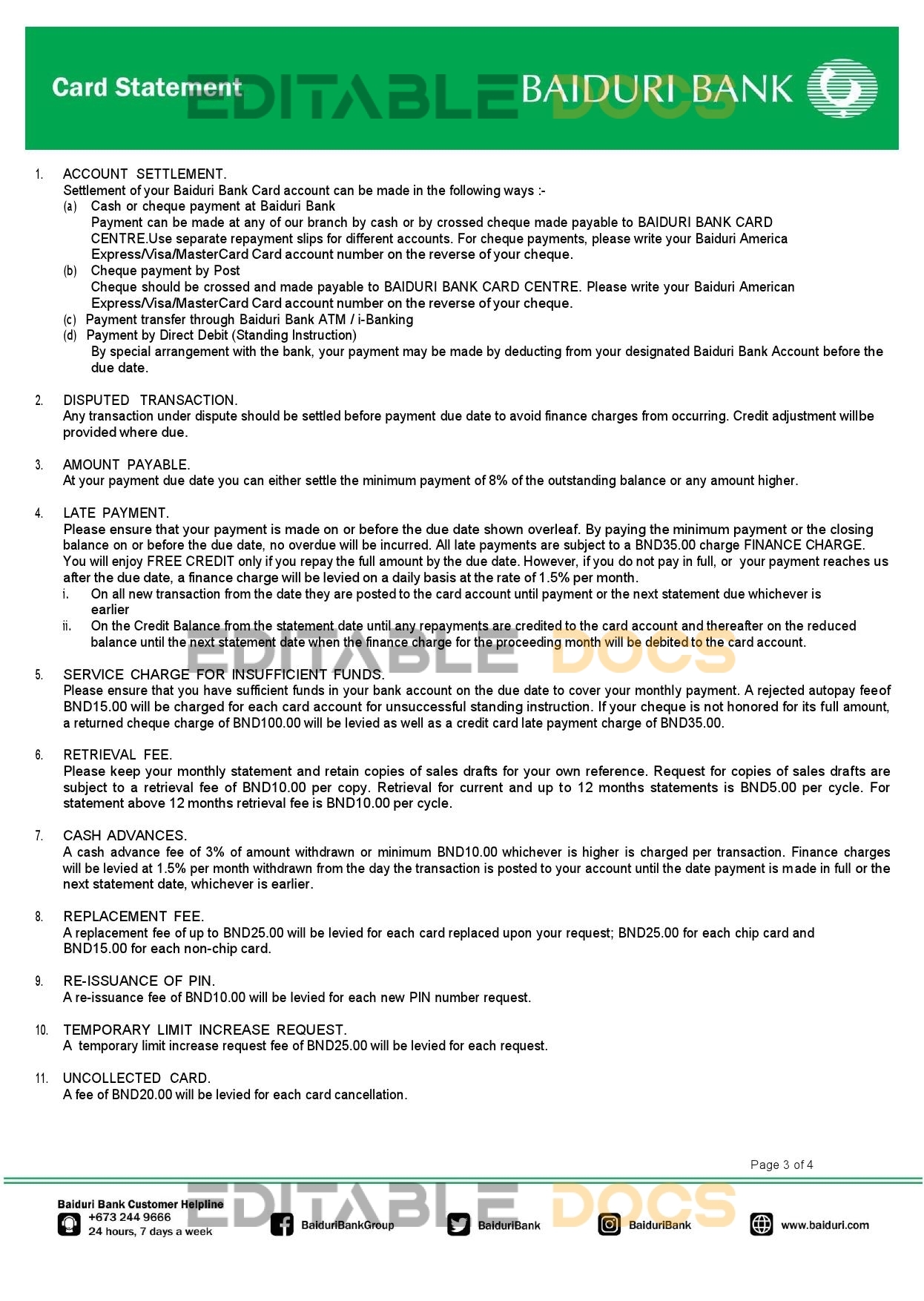 Brunei Baiduri bank card statement, Word and PDF template, 4 pages Brunei Baiduri bank card statement, Word and PDF template, 4 pages