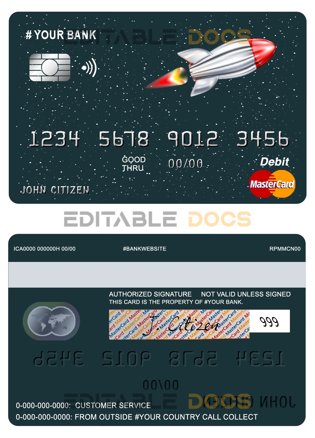 Do you want to use a fillable mastercard debit credit card that truly reflects your authority and is realistic? Look no further! Our customizable direct rocket universal multipurpose bank mastercard debit credit card in PSD format are the perfect solution.