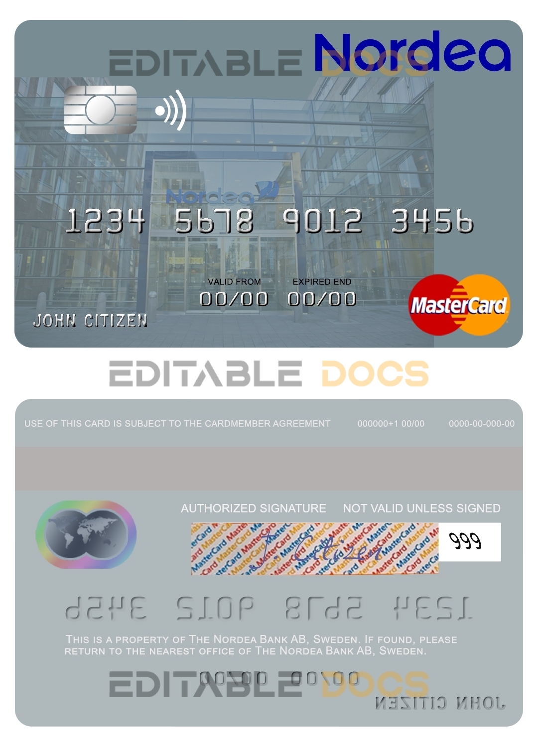 Do you want to use a fillable mastercard that truly reflects your authority and is realistic? Look no further! Our customizable Sweden Nordea Bank AB mastercard in PSD format are the perfect solution.