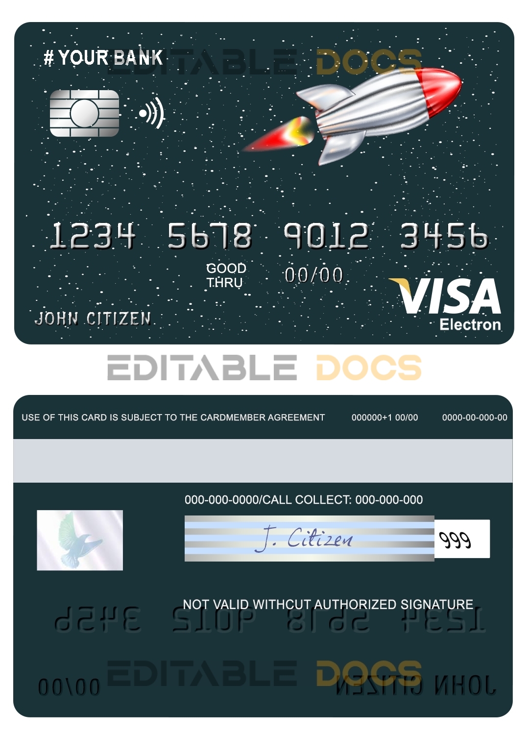 visa electron cards are a widely used payment method worldwide. visa electron card templates are pre-designed digital files (mostly in PSD format, supported by Adobe Photoshop) that you can edit and customize to create personalized visa electron cards. You can use them for various purposes, including: