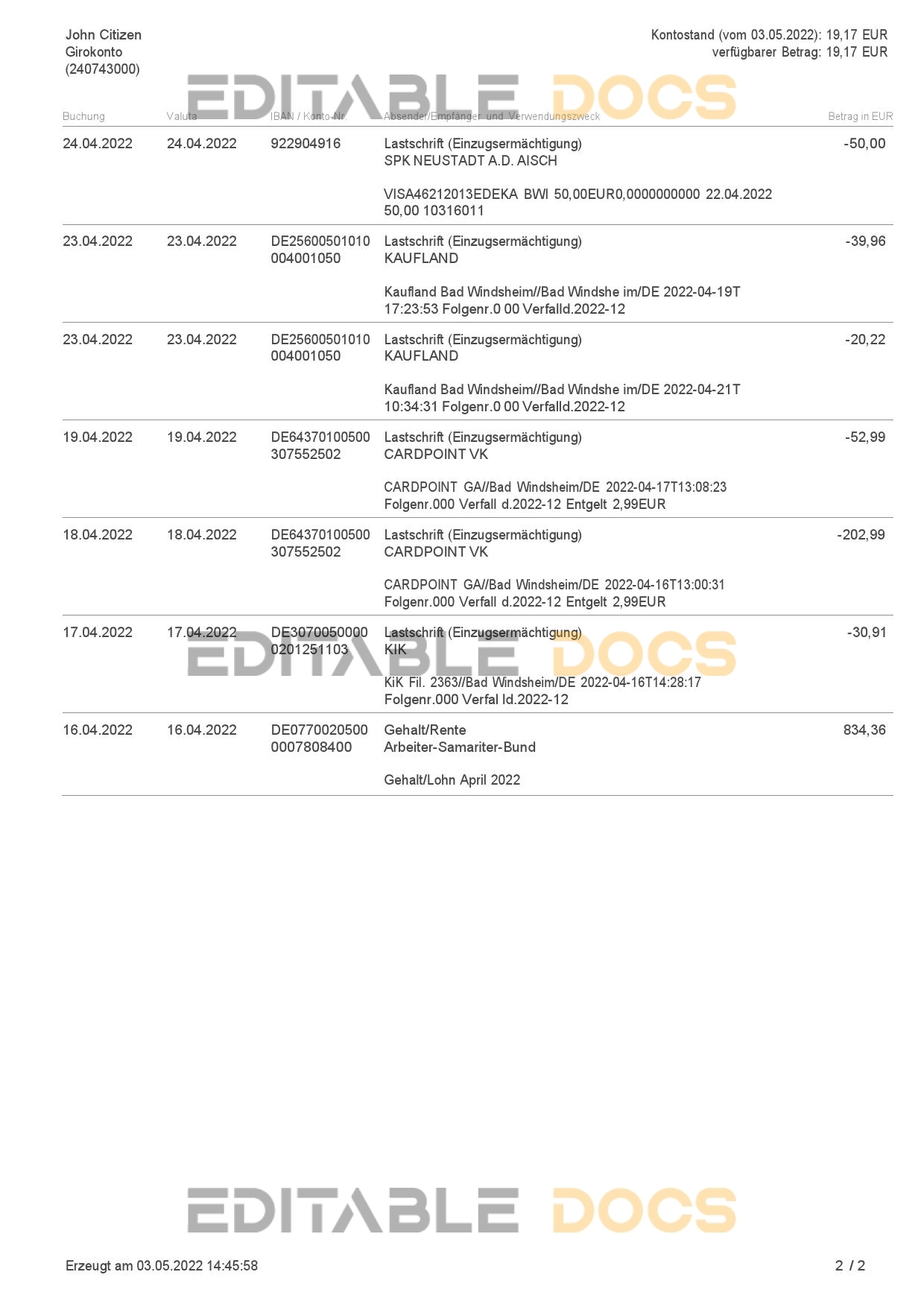 Once you make your purchase, you’ll be able to immediately download the Germany Consorsbank bank statement.doc file and fonts.