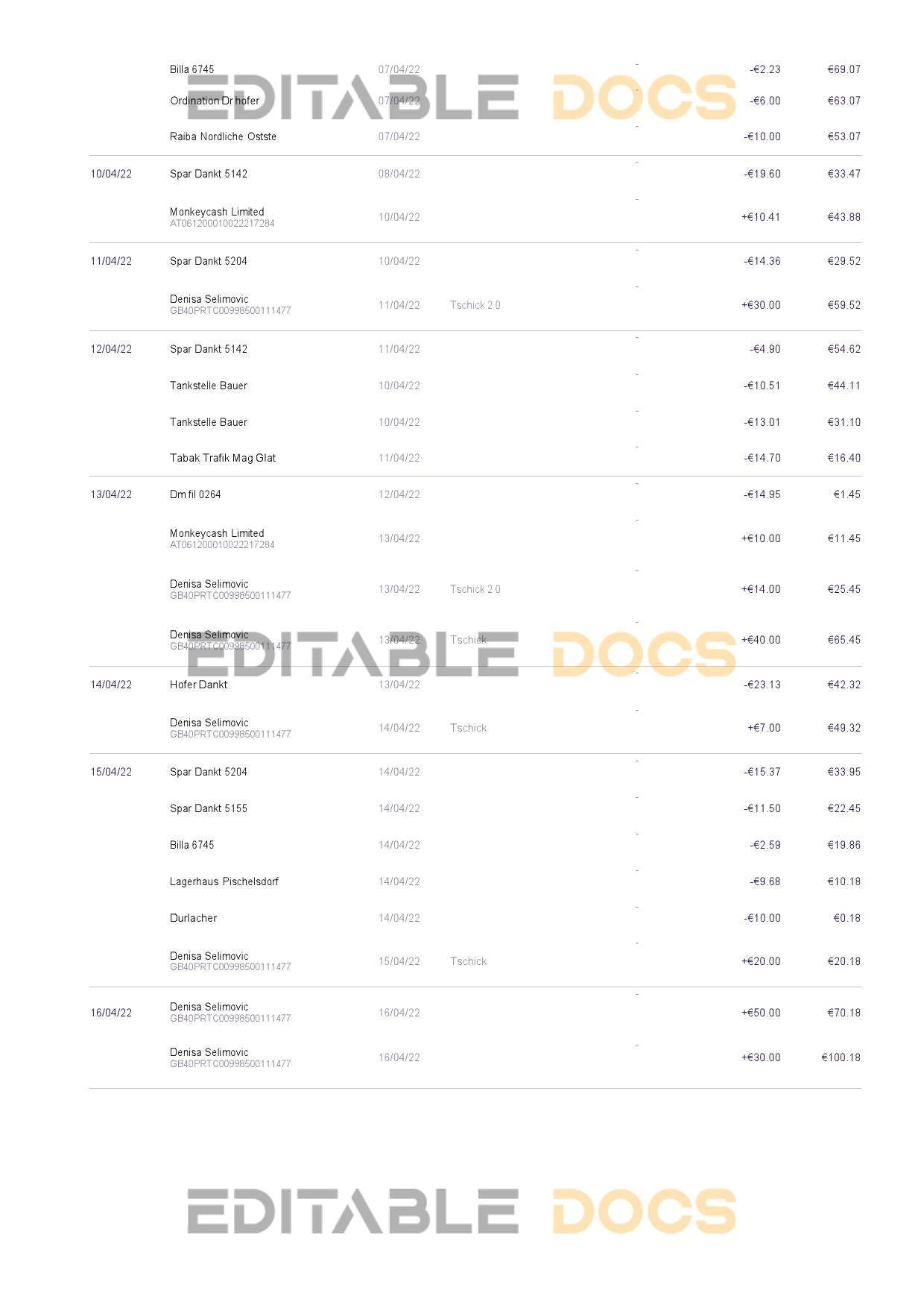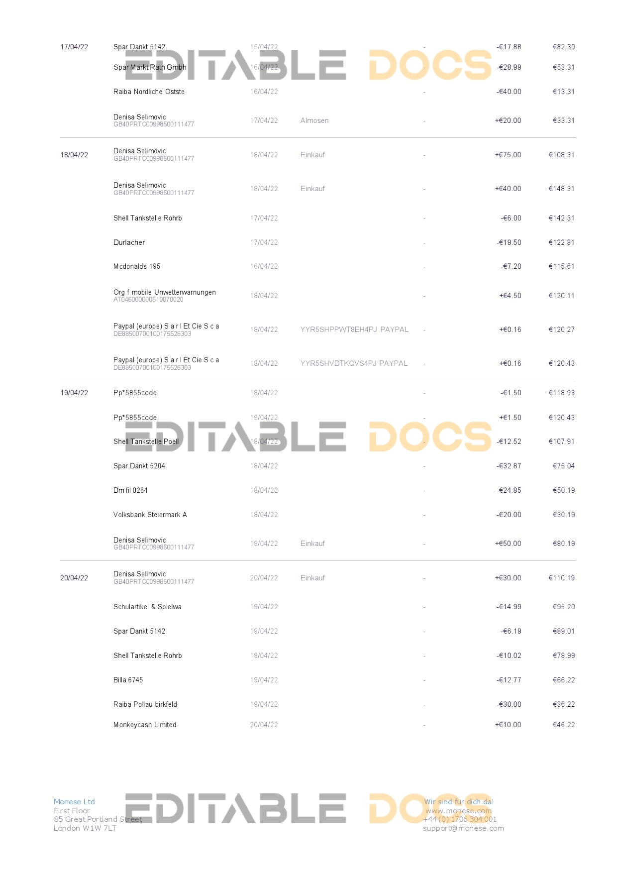 Once you make your purchase, you’ll be able to immediately download the Germany Monese bank statement.doc file and fonts.