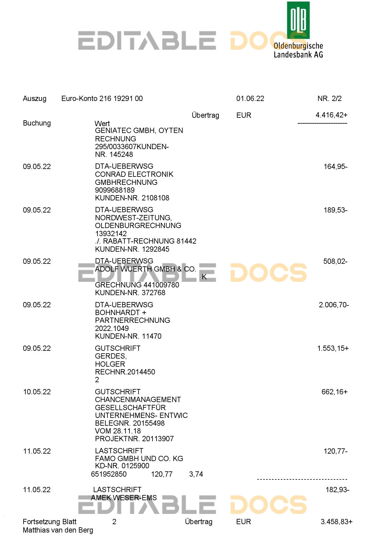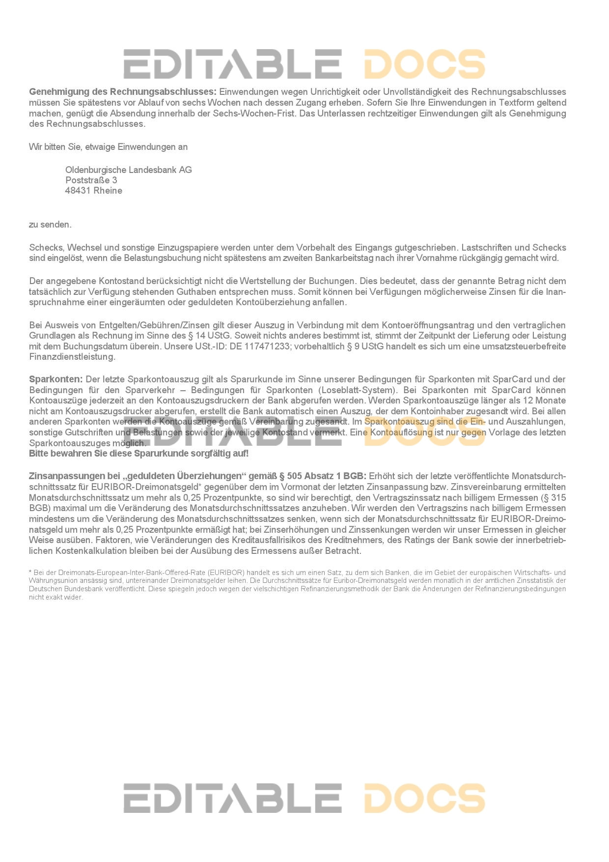 Once you make your purchase, you’ll be able to immediately download the Germany Oldenburgische bank statement.doc file and fonts.