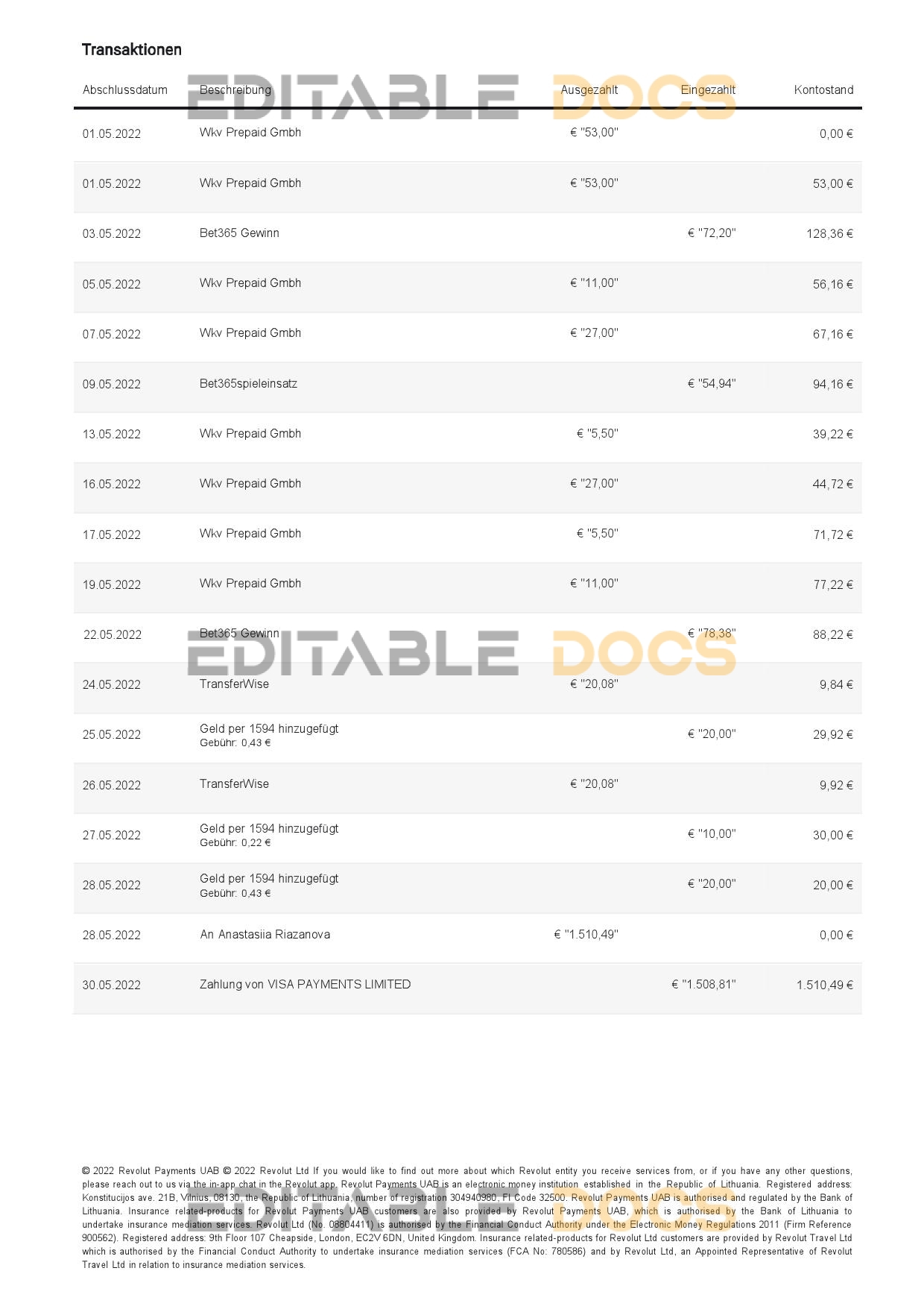 Once you make your purchase, you’ll be able to immediately download the Germany Revolut EUR bank statement.doc file and fonts.