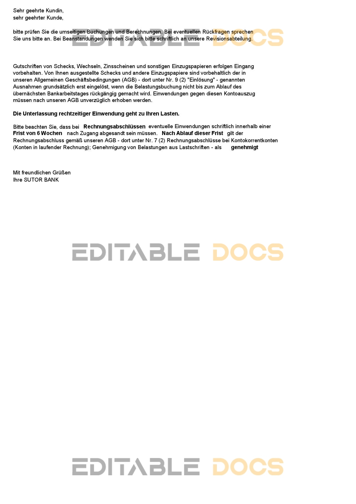 Once you make your purchase, you’ll be able to immediately download the Germany Sutor bank statement.doc file and fonts.