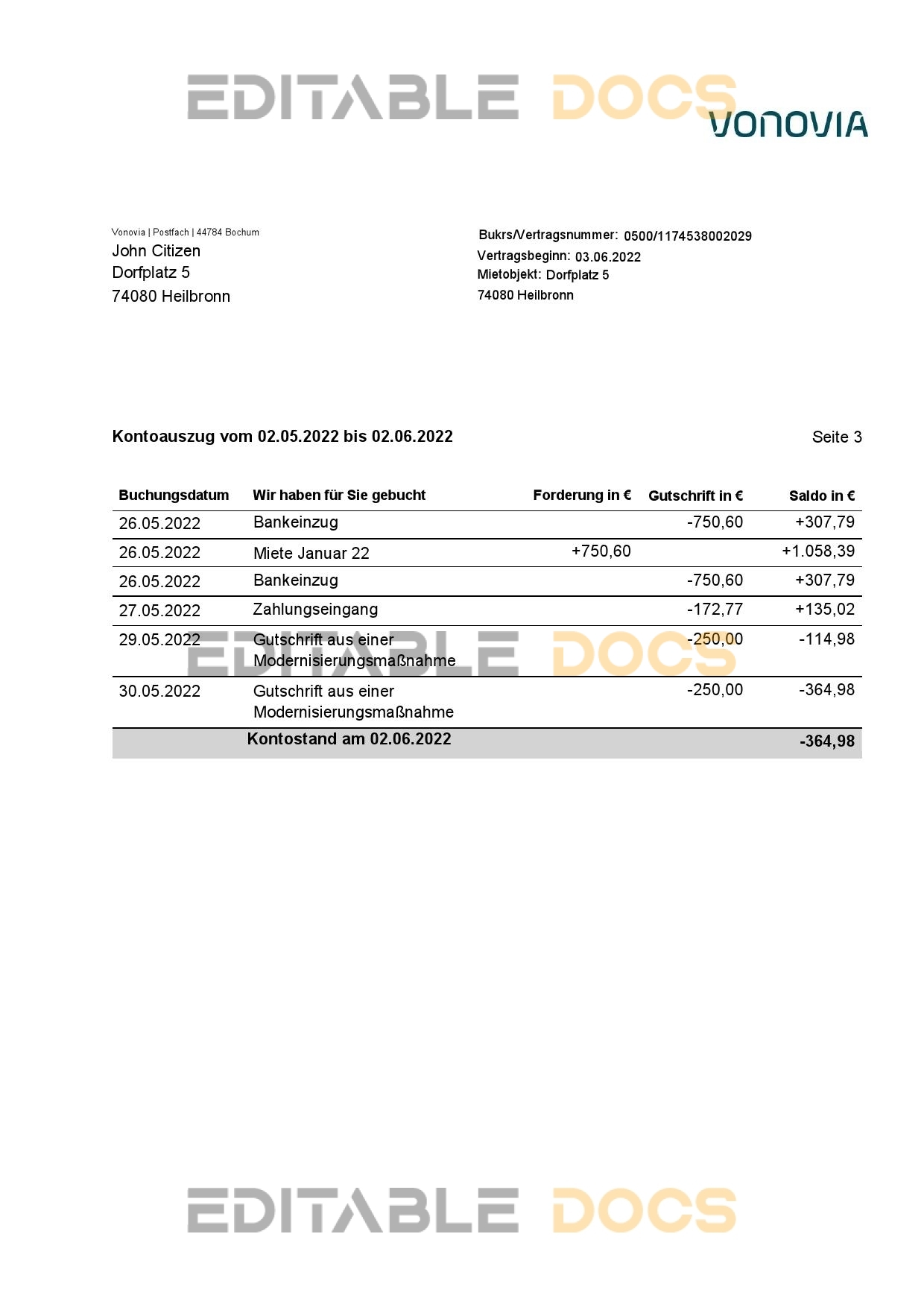 Germany Vonovia bank statement Word and Pdf Template use for :