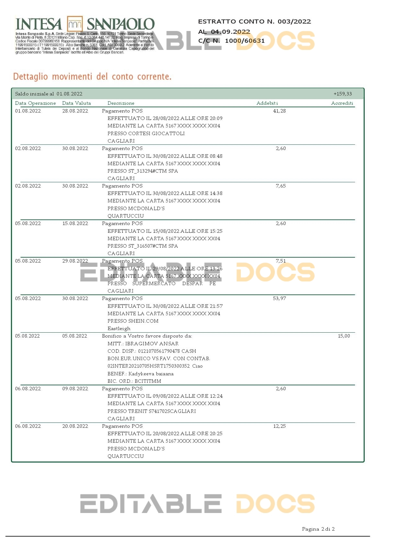 Italy Intesa Sanpaolo bank statement reliable Word template