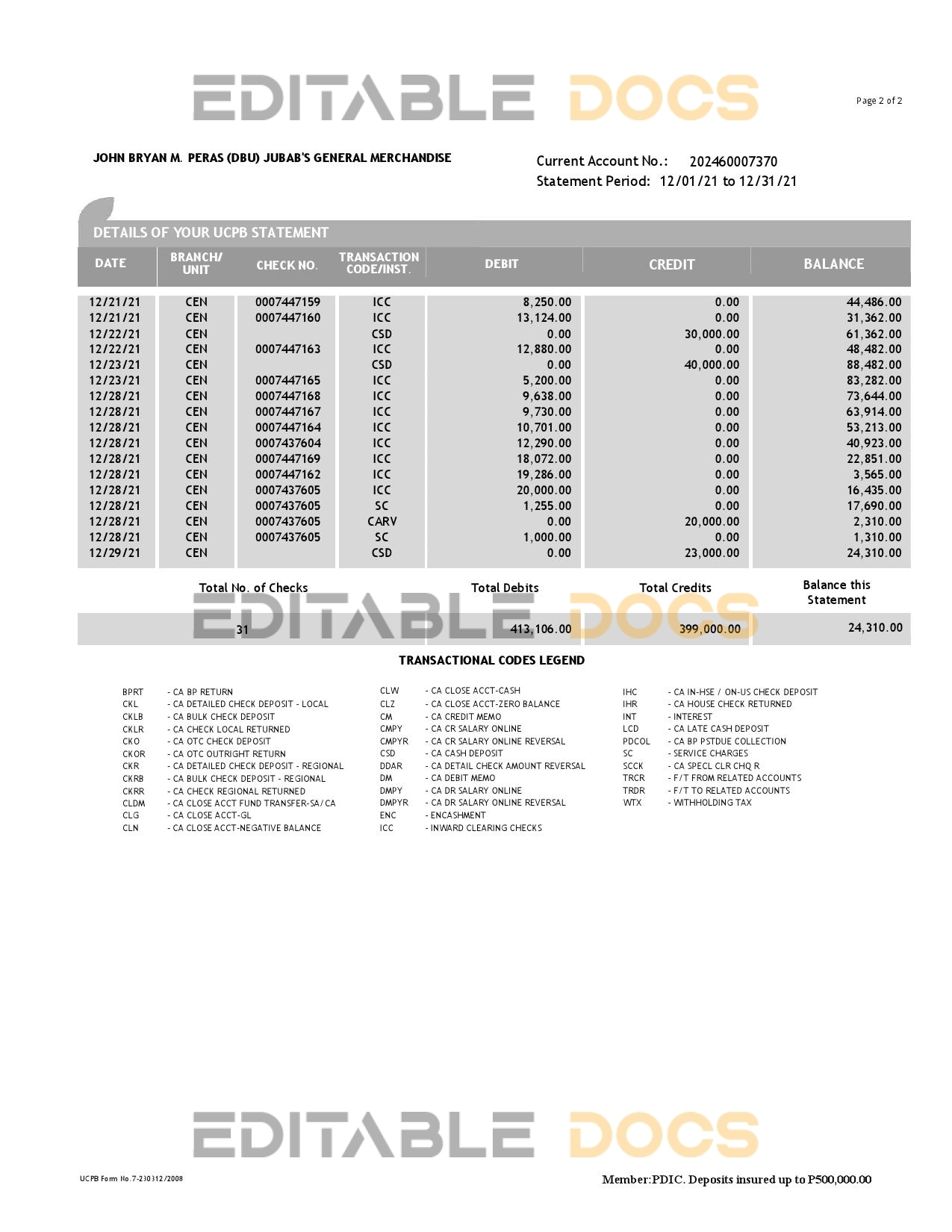 Philippines UCPB bank statement of account Word and Pdf Template use for :