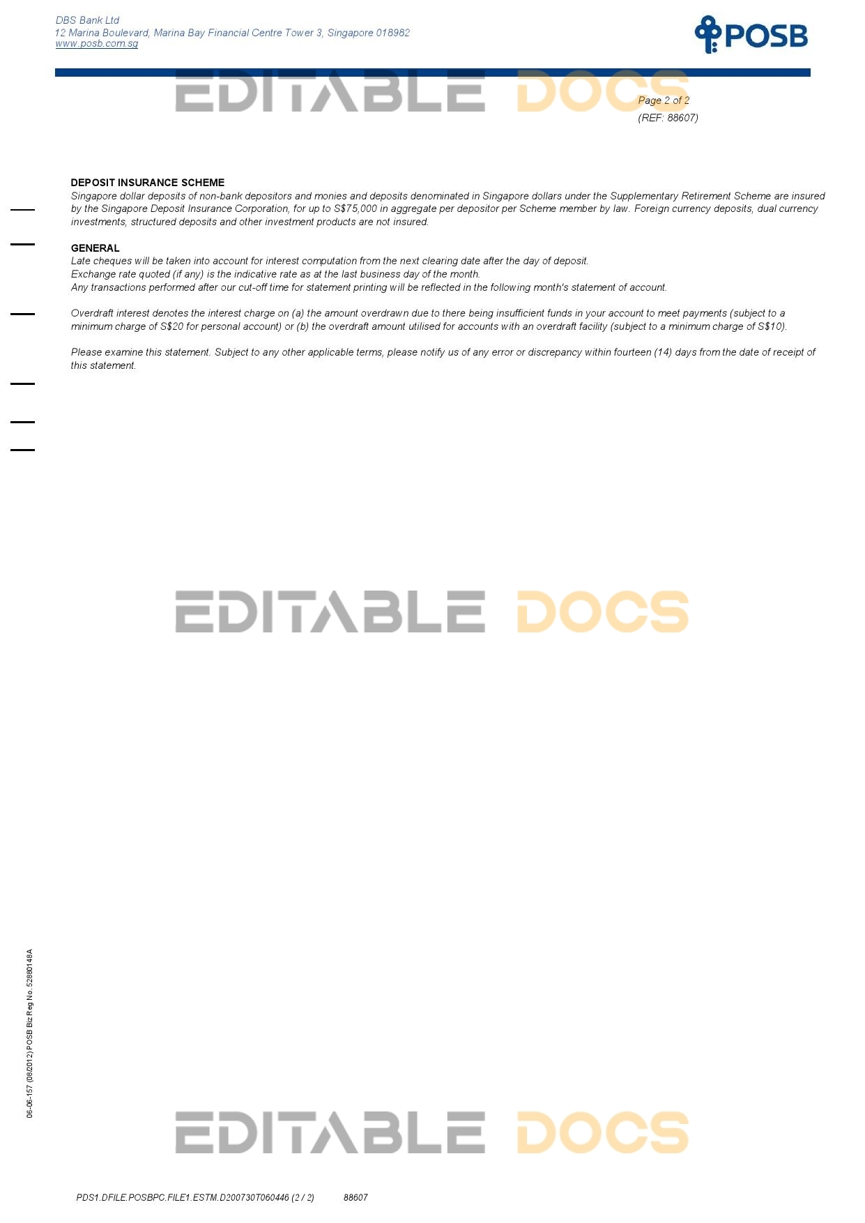 Singapore DBS bank statement Word template . Fully editable Word template. High quality template. Easy to customize, Layer based, fonts included. you can edit this template and put any name, address, license number, Id number, birth date, height, weight, expire date, change photos etc. This Word template is a easy to Editing.To modify this Word template file you will need a Word editing software such as Microsoft Word. Never used low quality template. Your account may be suspended.