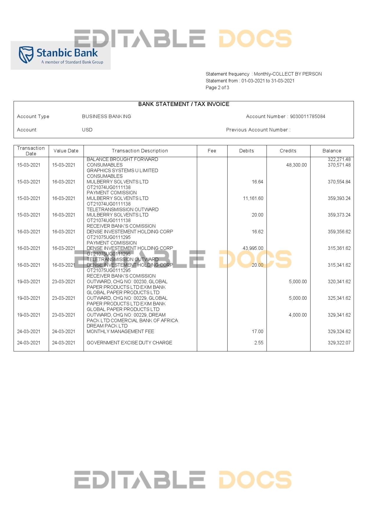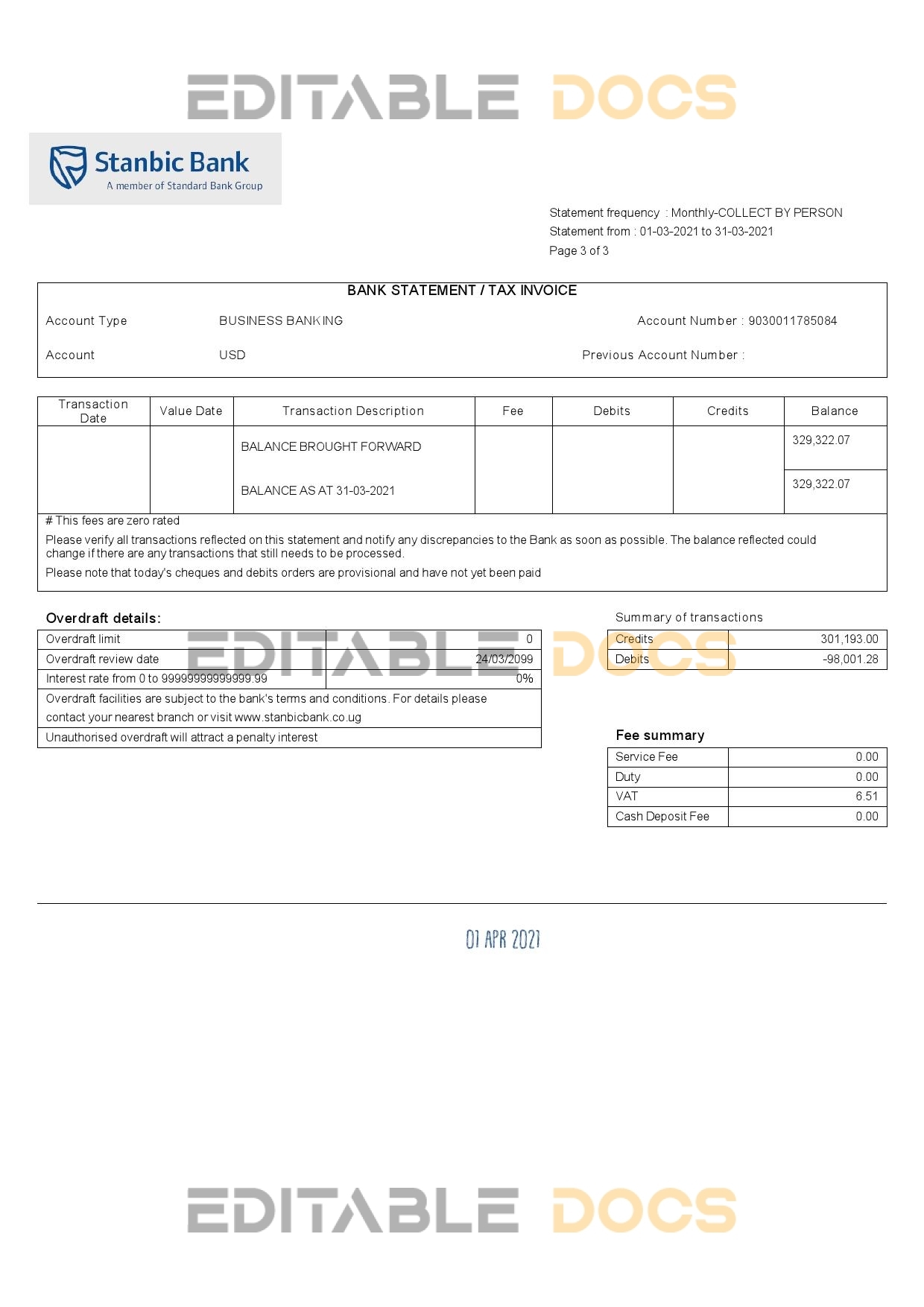 Once you make your purchase, you’ll be able to immediately download the Uganda Stanbic bank statement.doc file and fonts.