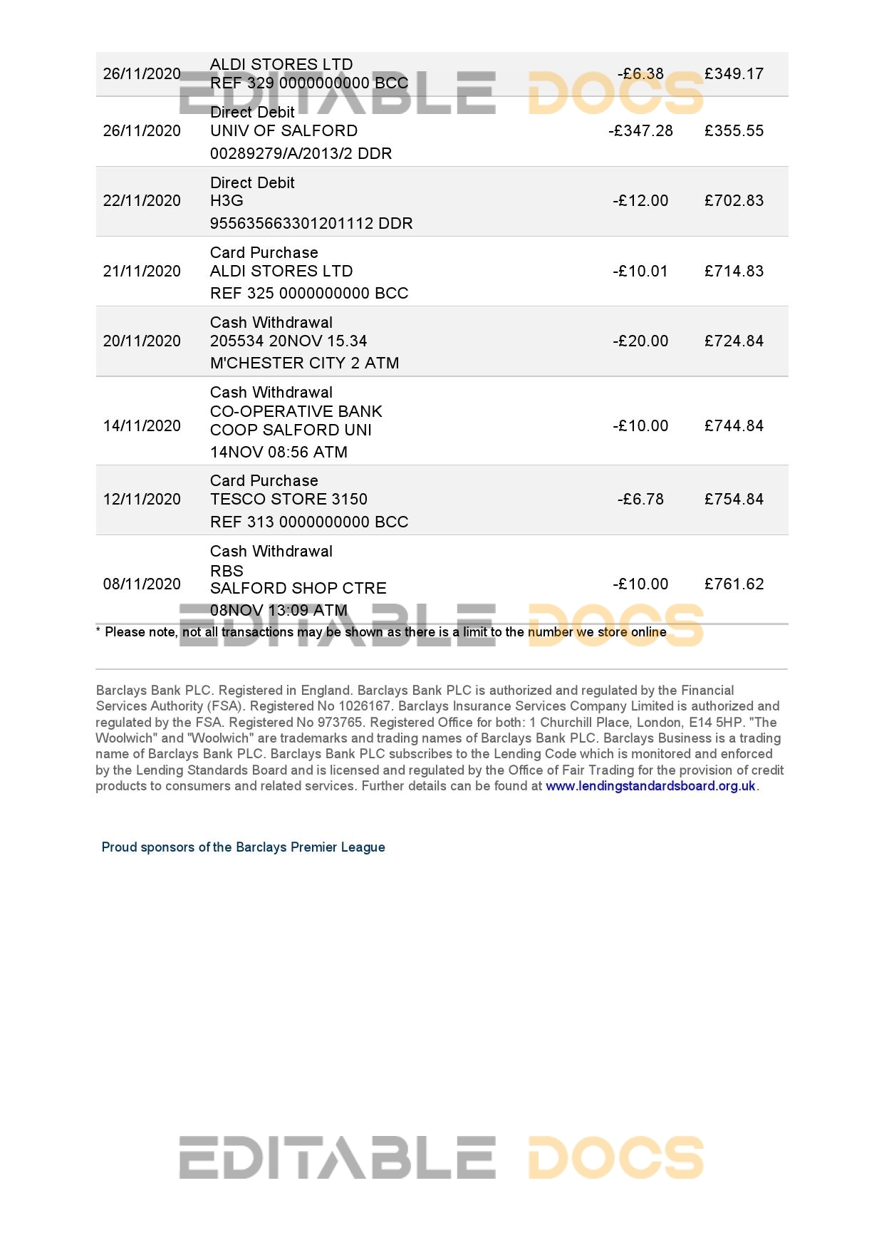 United Kingdom Barclays bank statement reliable Word template