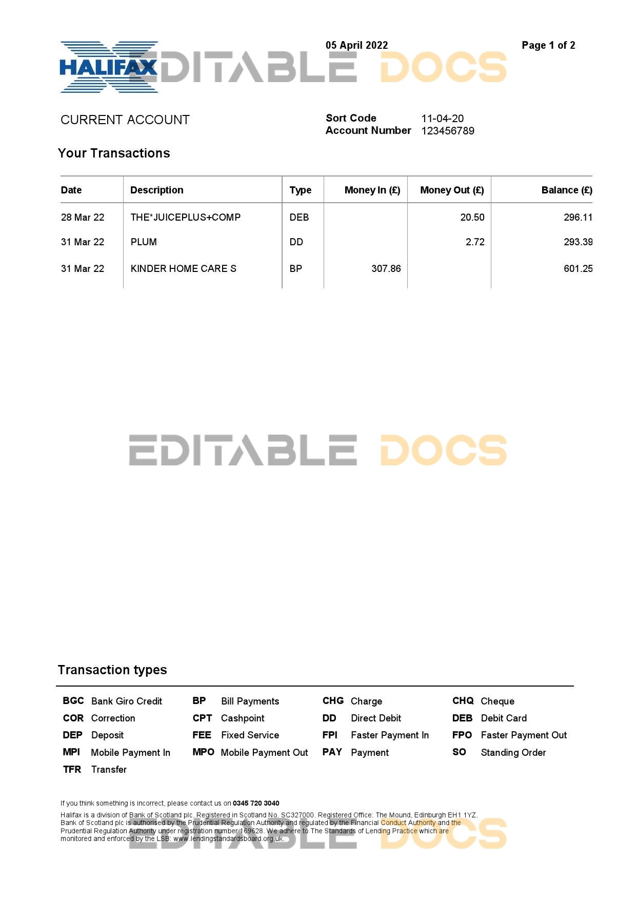Once you make your purchase, you’ll be able to immediately download the United Kingdom Halifax bank statement.doc file and fonts.