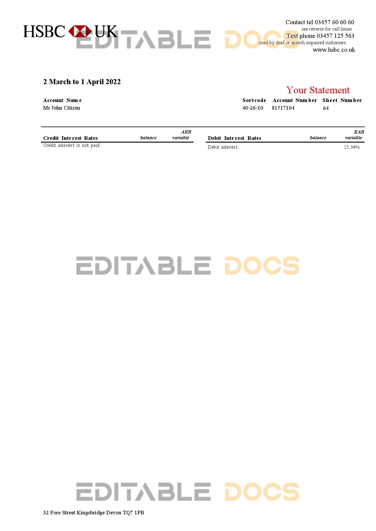Once you make your purchase, you’ll be able to immediately download the United Kingdom HSBC bank business account statement.doc file and fonts.
