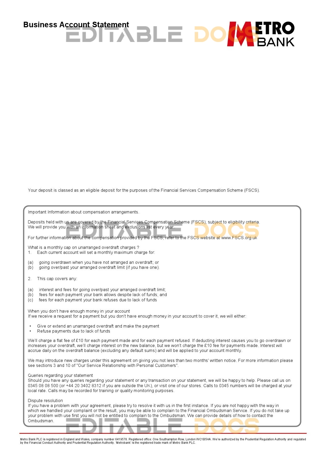 United Kingdom Metro bank business account statement Word template . Fully editable Word template. High quality template. Easy to customize, Layer based, fonts included. you can edit this template and put any name, address, license number, Id number, birth date, height, weight, expire date, change photos etc. This Word template is a easy to Editing.To modify this Word template file you will need a Word editing software such as Microsoft Word. Never used low quality template. Your account may be suspended.