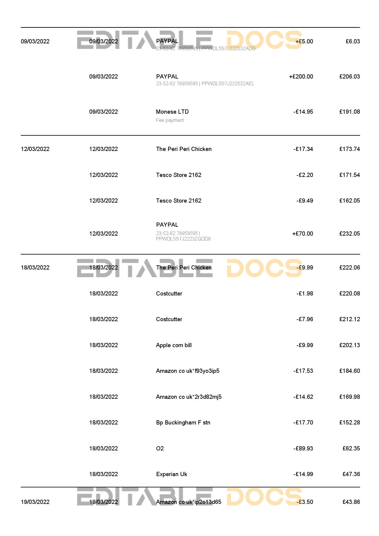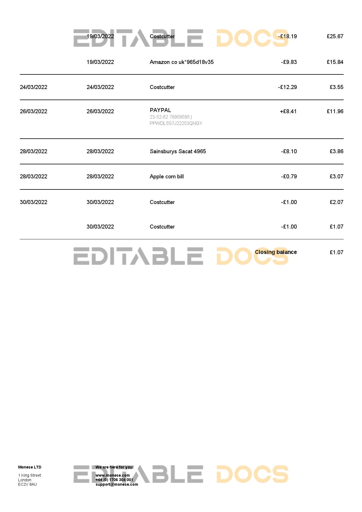 United Kingdom Monese bank statement reliable Word template