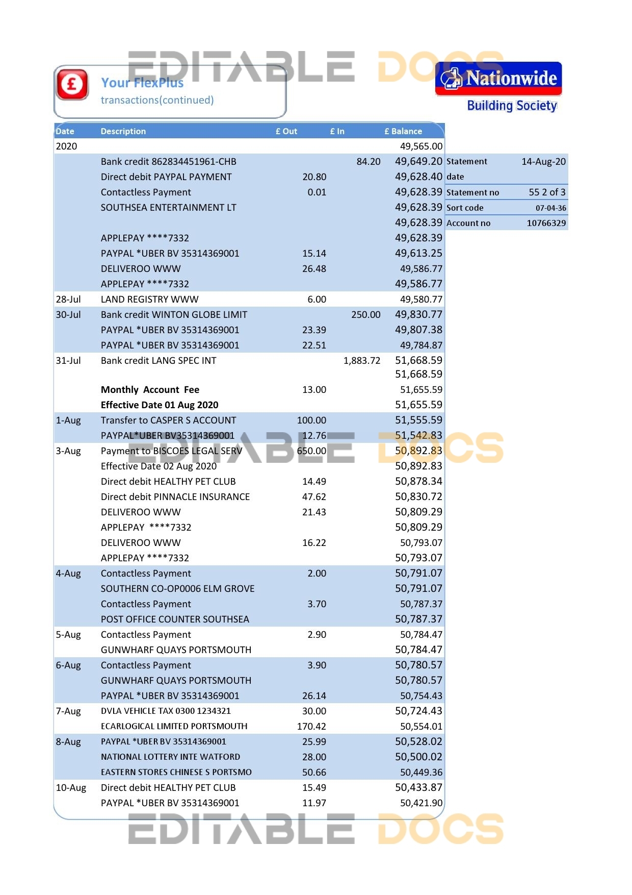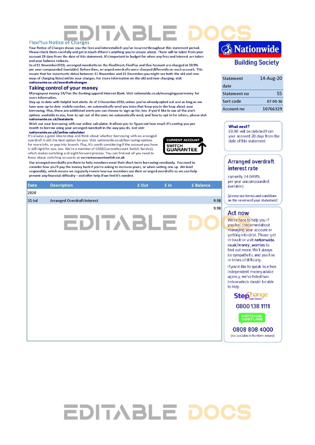 When you make a purchase, you’ll be able to enjoy an instant file download, which includes the United Kingdom Nationwide bank statement.doc file and fonts.
