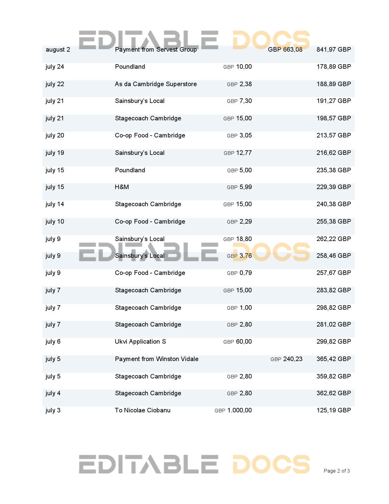 United Kingdom Revolut bank statement Word and Pdf Template use for :