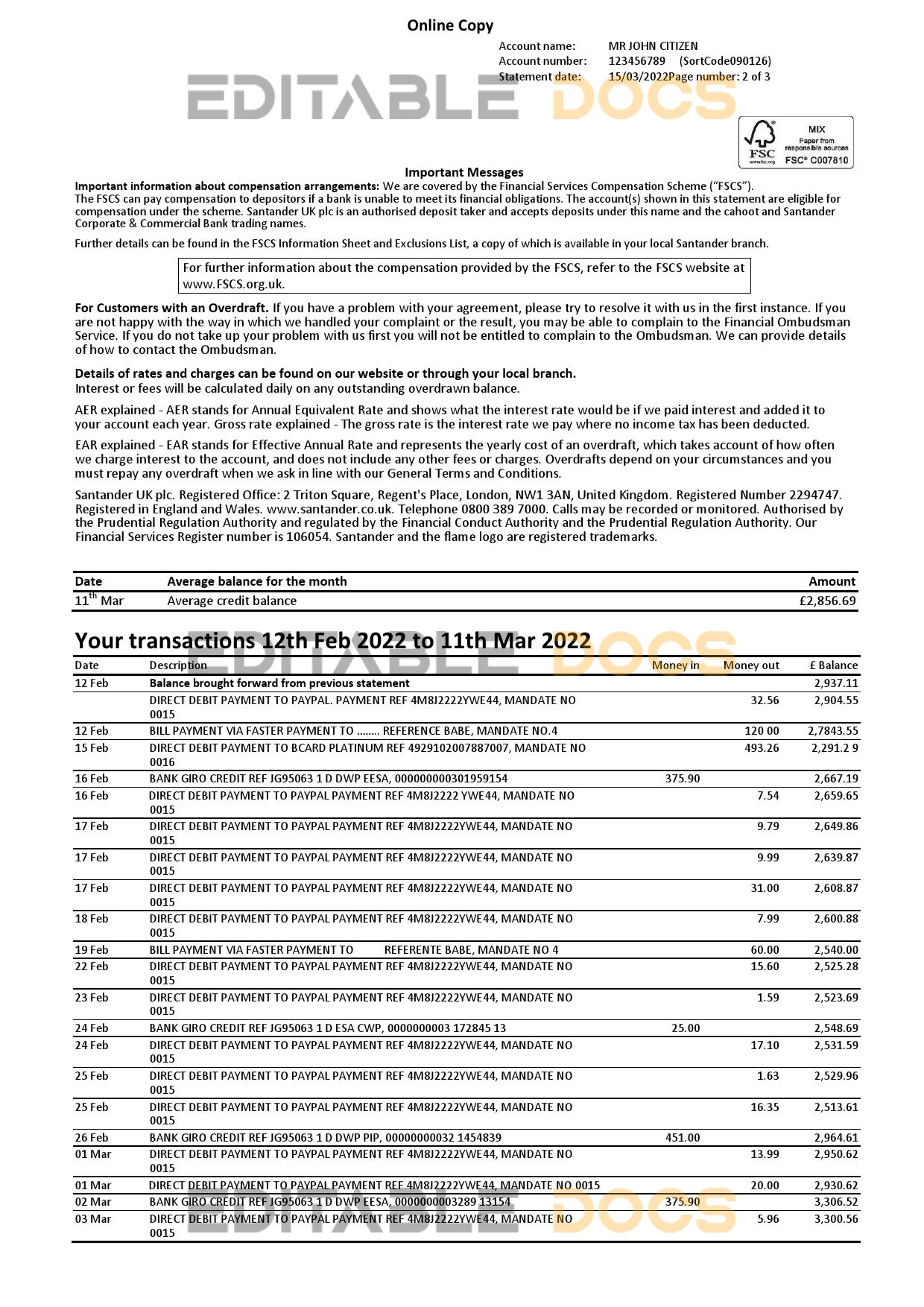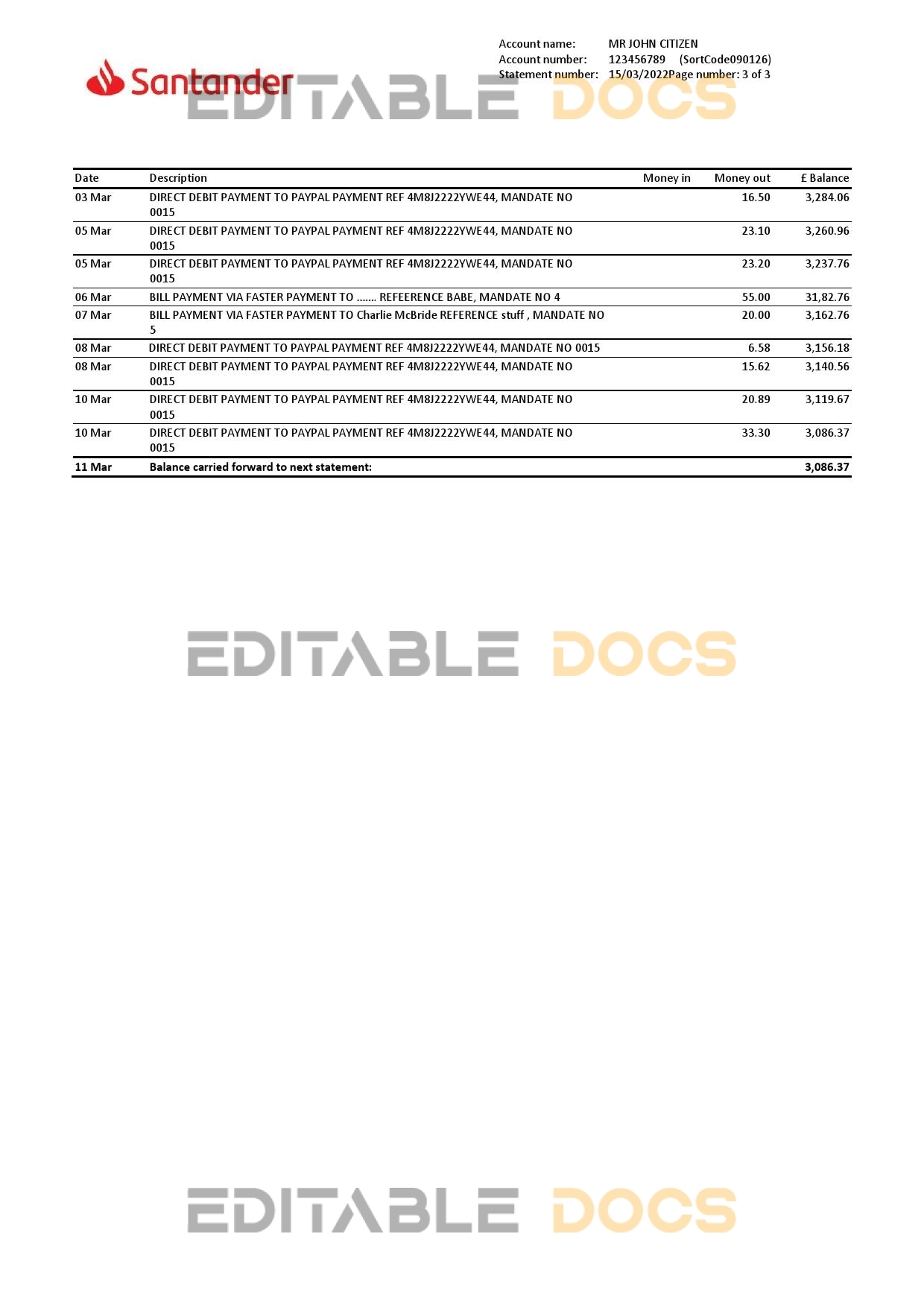 Once you make your purchase, you’ll be able to immediately download the United Kingdom Santander bank statement.doc file and fonts.