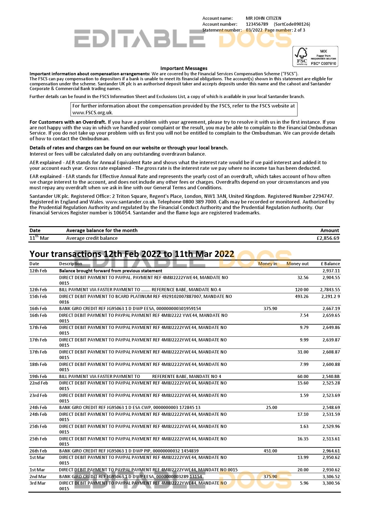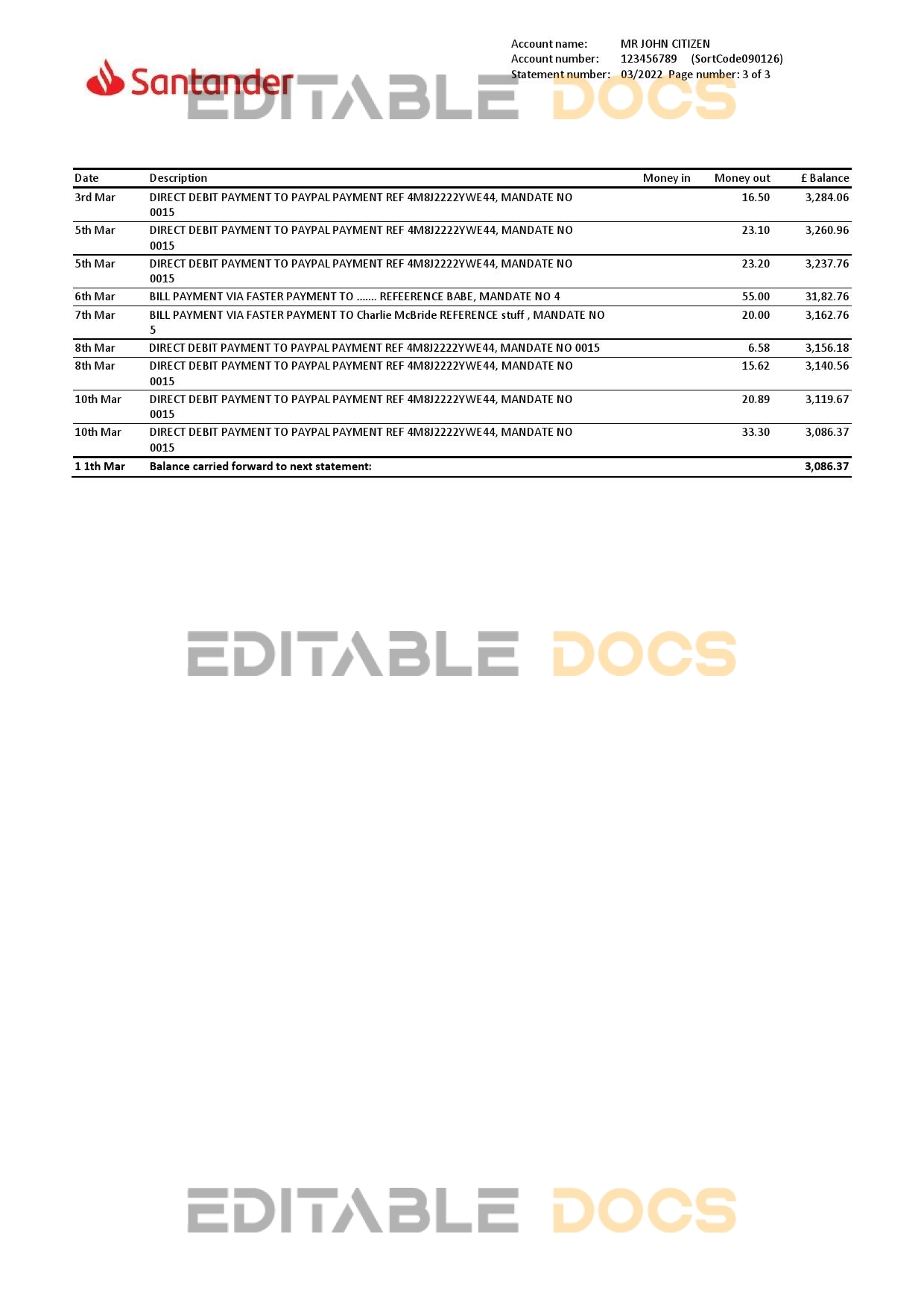 Once you make your purchase, you’ll be able to immediately download the United Kingdom Santander bank statement.doc file and fonts.