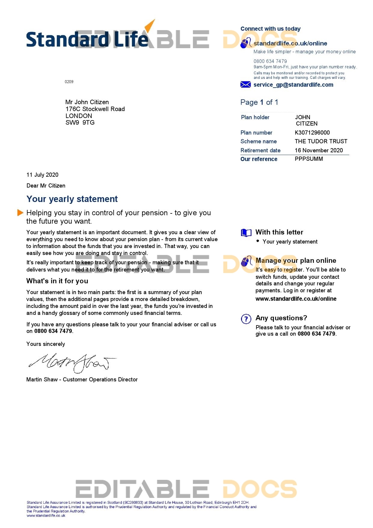 United Kingdom Standard Life utility bill Word and Pdf Template used for: