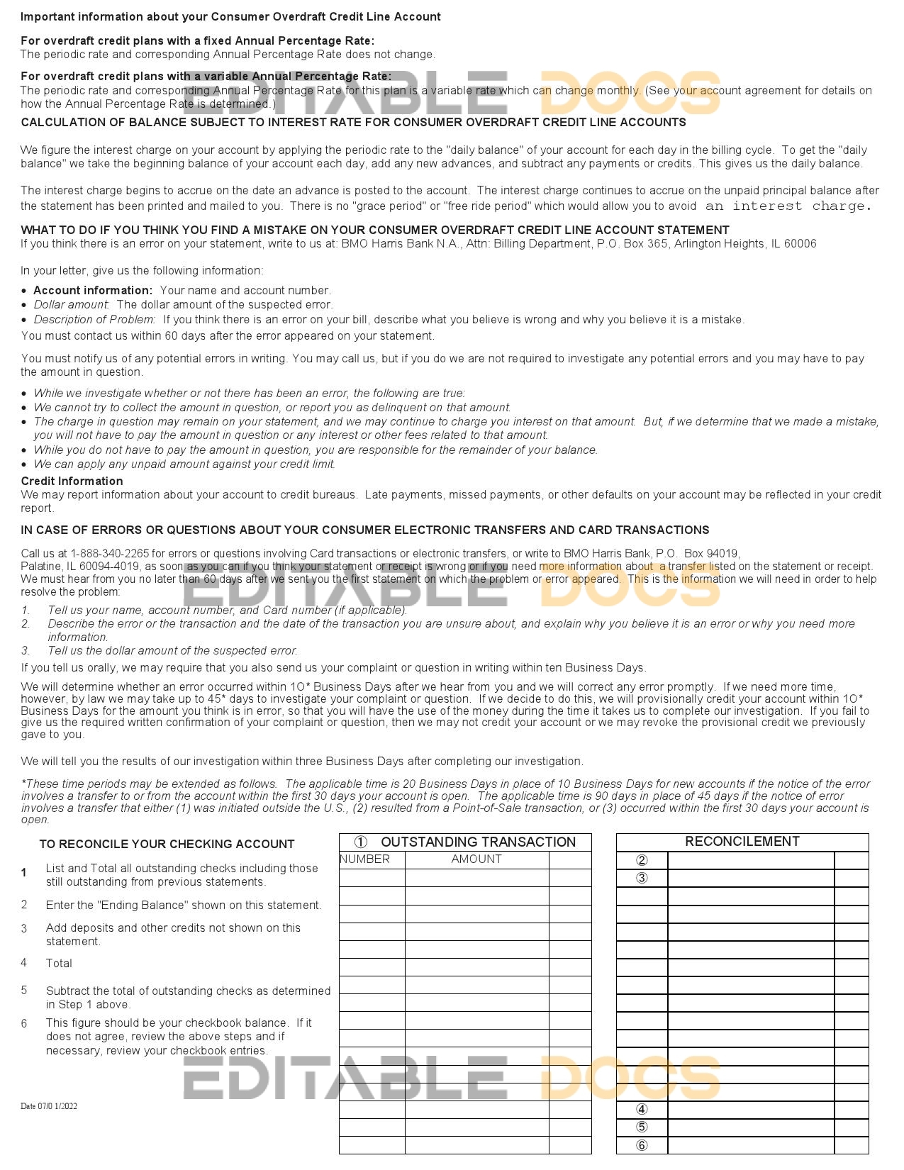 Once you make your purchase, you’ll be able to immediately download the USA BMO Harris bank statement.doc file and fonts.