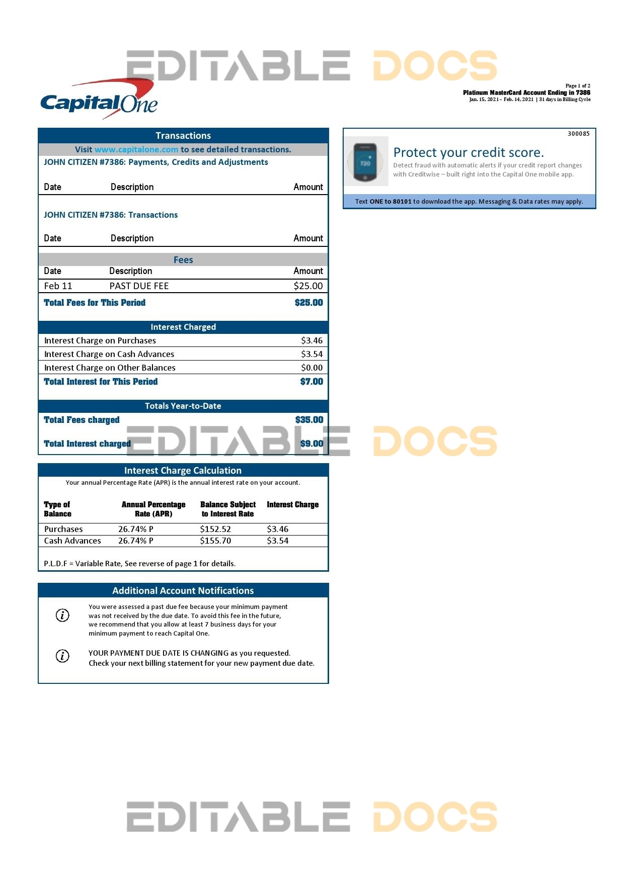 USA Capital One bank statement template in Word and PDF format (2 pages) version 3 USA Capital One bank statement template in Word and PDF format (2 pages) version 3