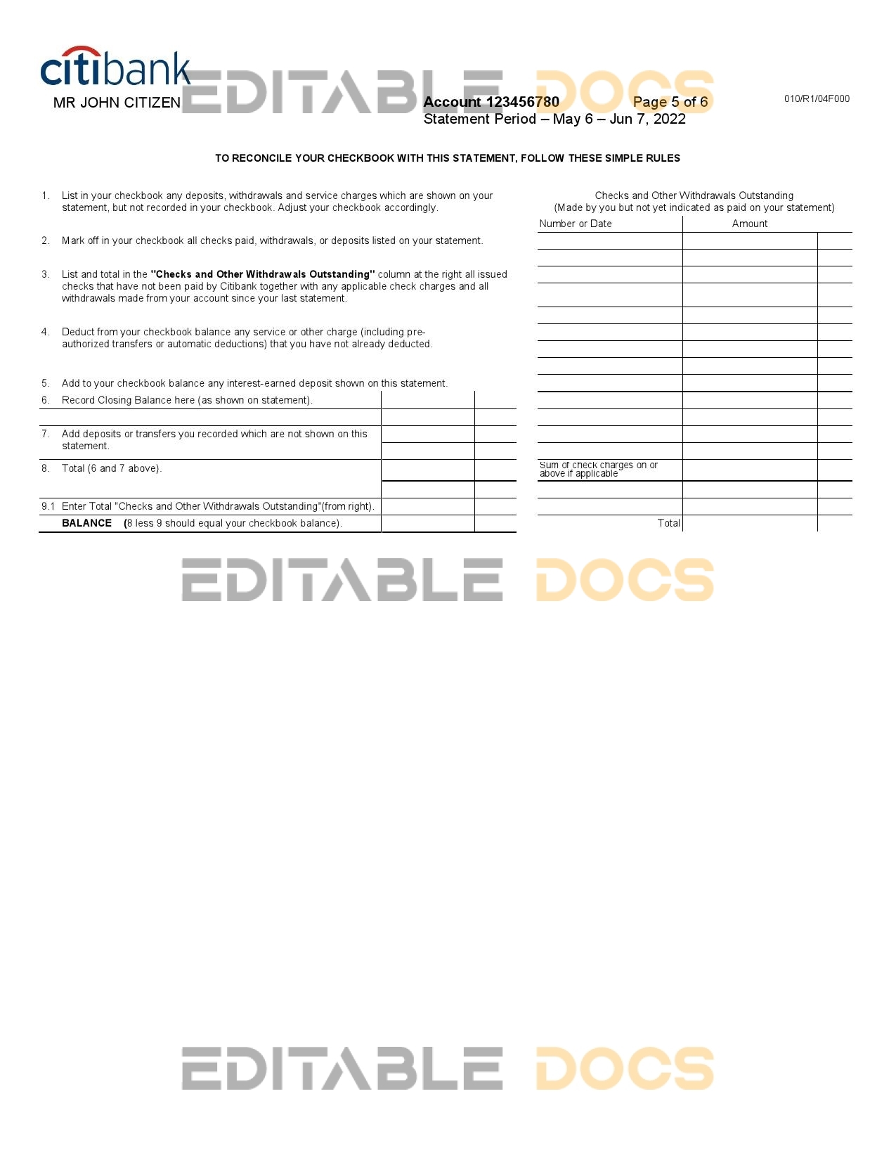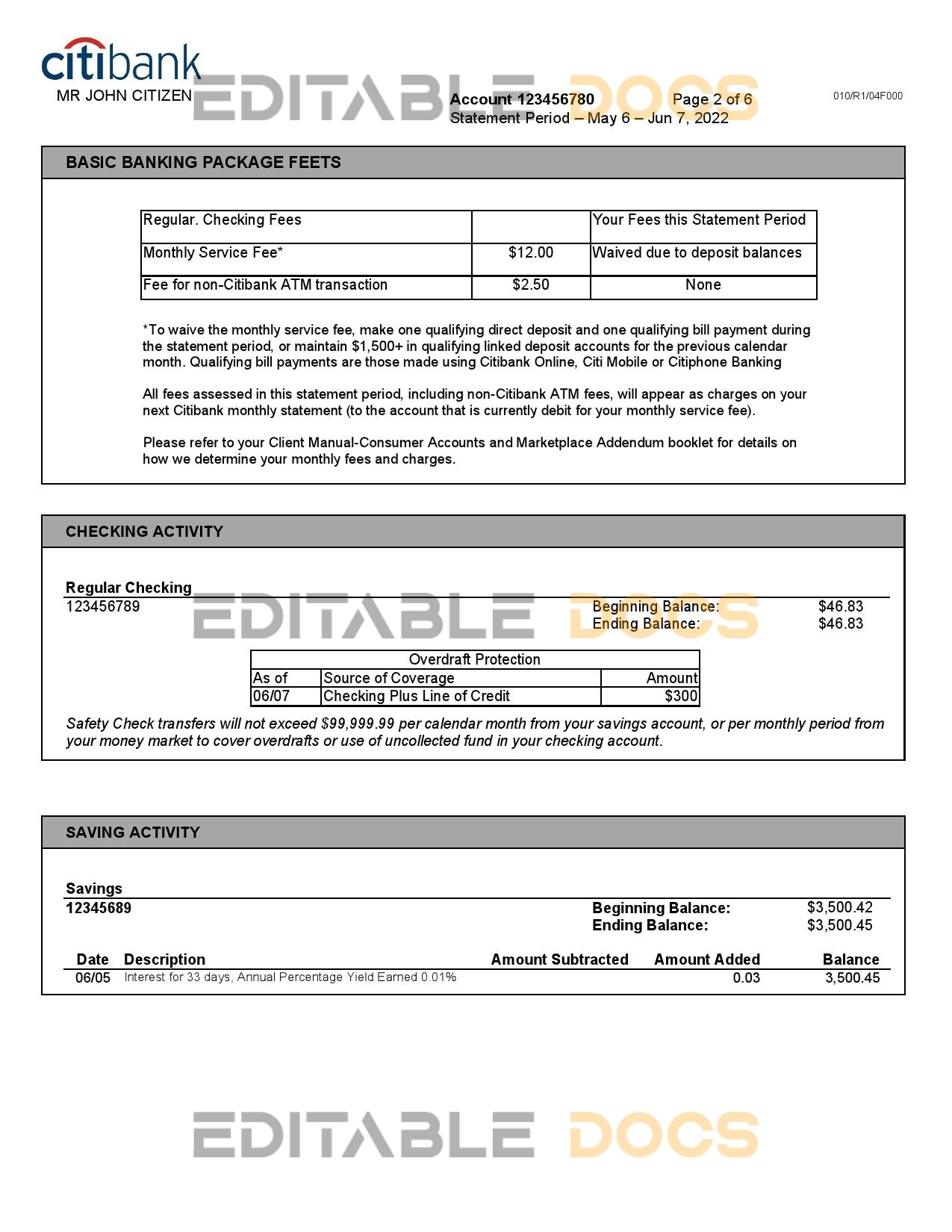 Once you make your purchase, you’ll be able to immediately download the USA Citibank bank statement.doc file and fonts.