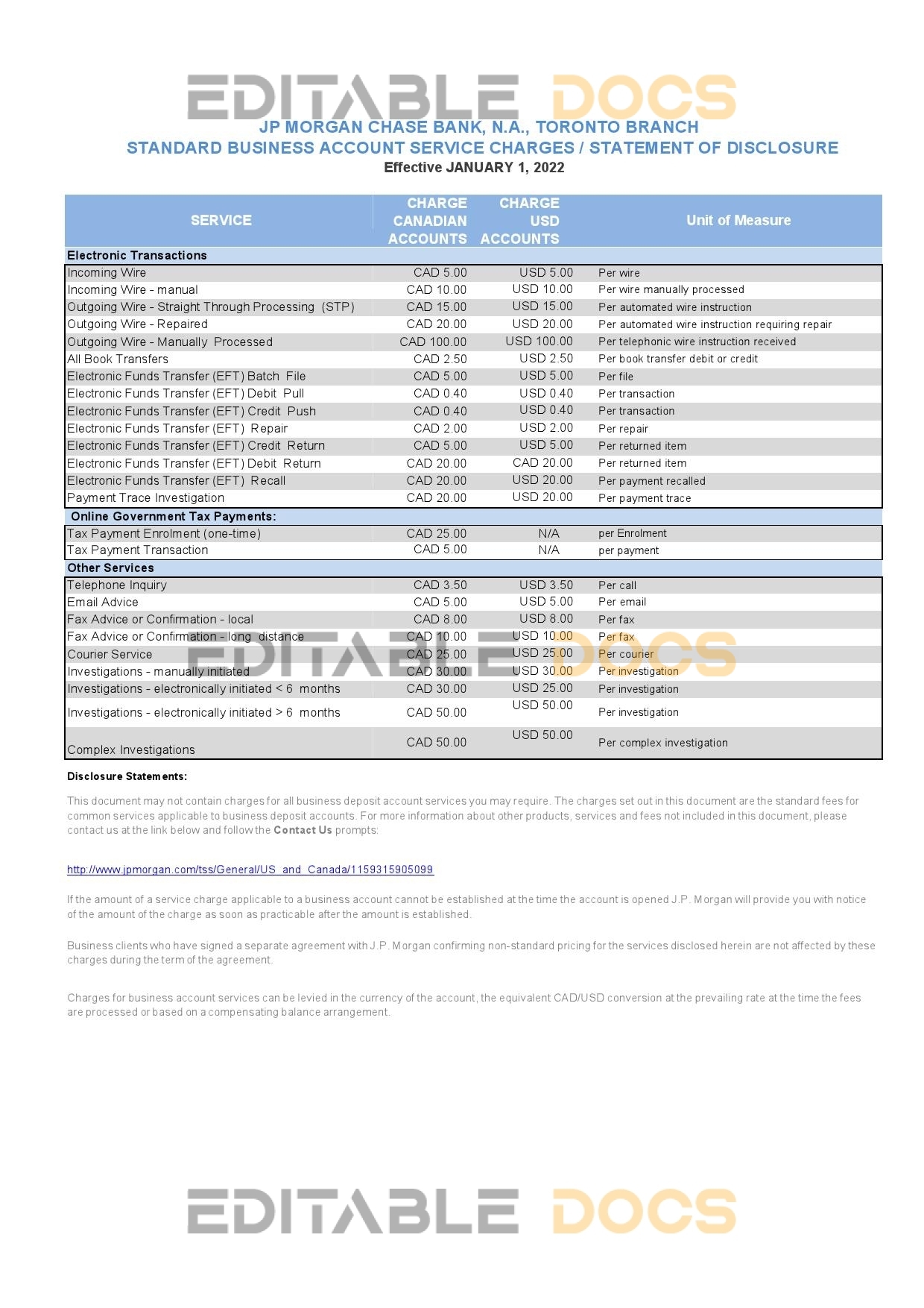 USA JP Morgan bank statement Word and Pdf Template use for :