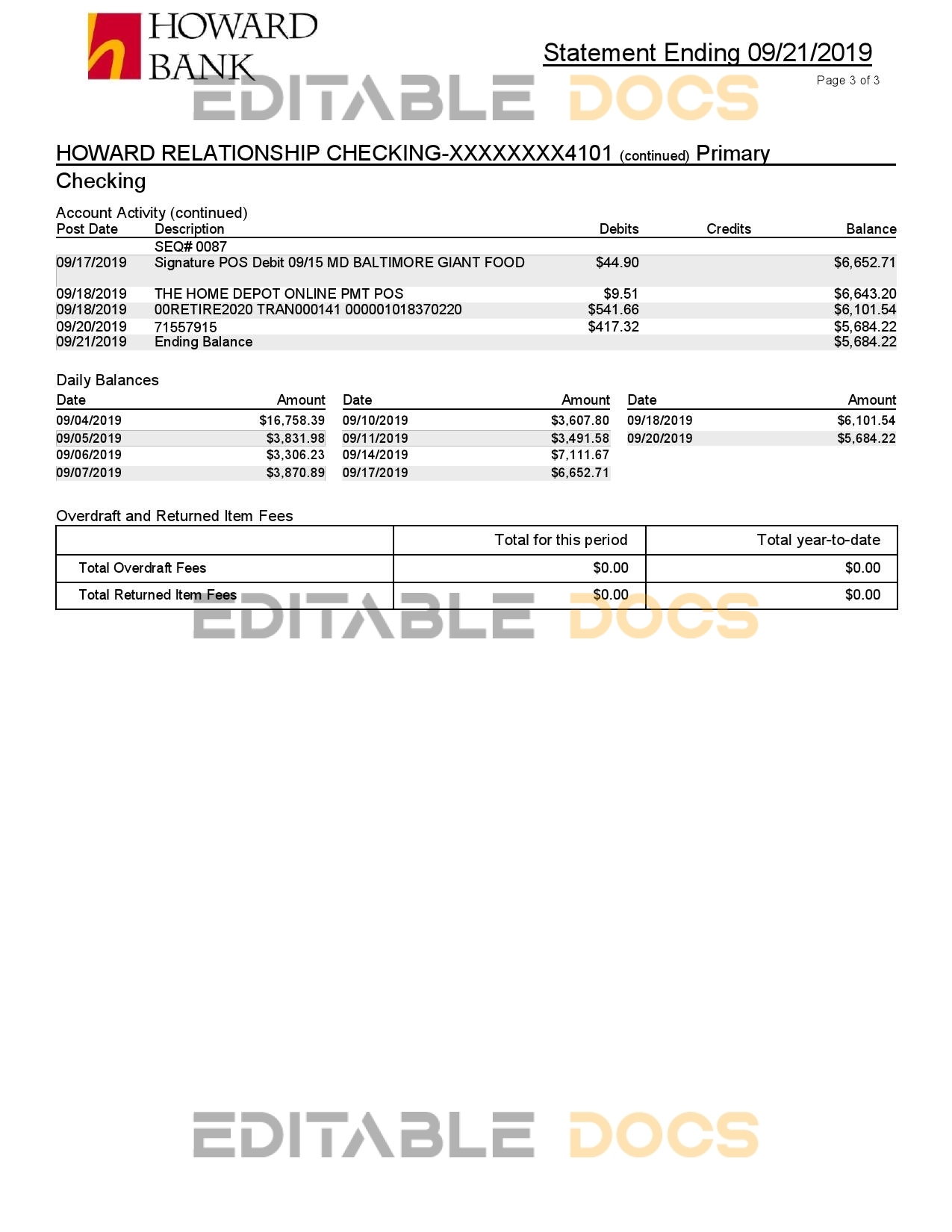 Once you make your purchase, you’ll be able to immediately download the USA Maryland Howard Business bank statement.doc file and fonts.