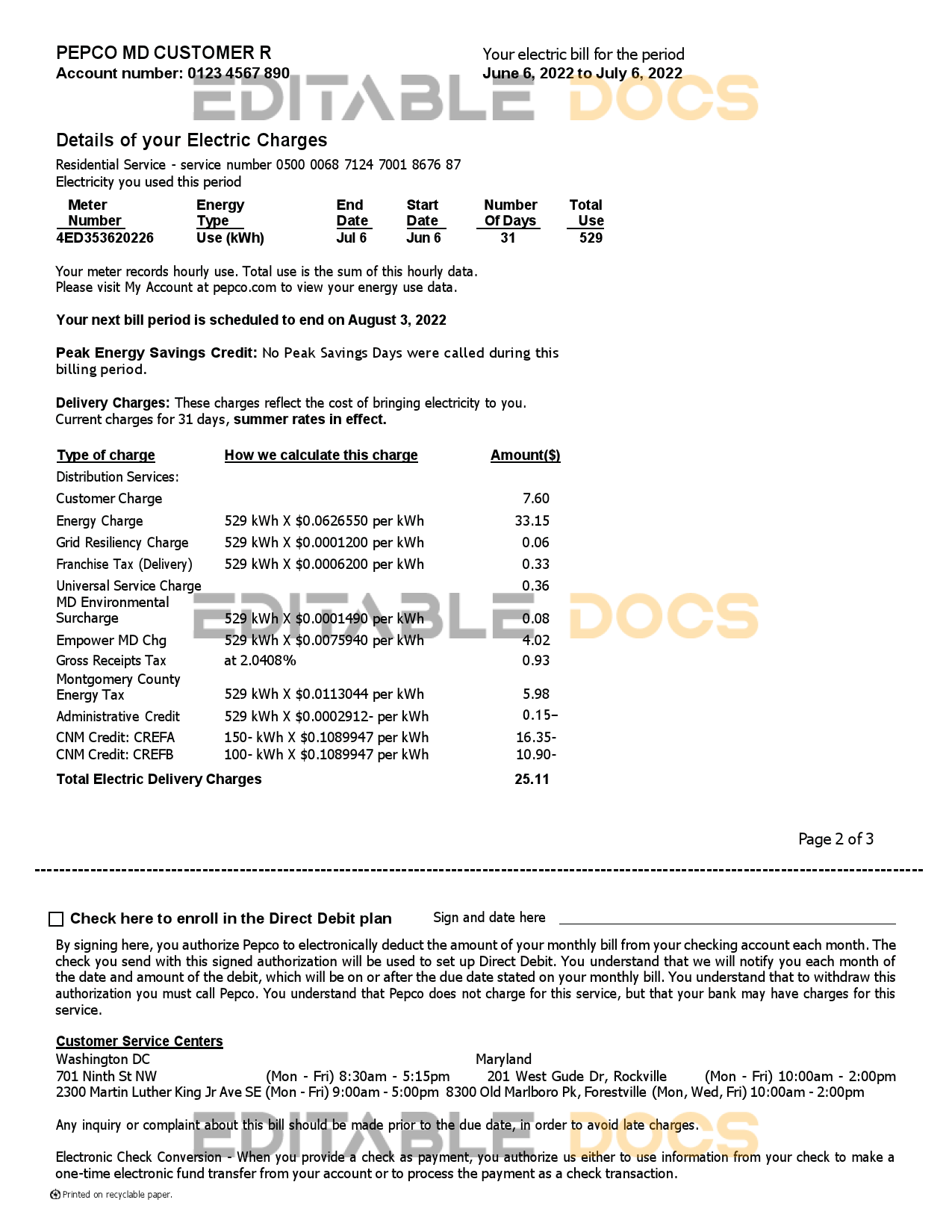 Buying the fully editable USA Maryland Pepco utility bill template from our website would provide you with an editable doc format. Then, put your own info to create a fake copy of a realistic USA Maryland Pepco utility bill for proof of address and ready your own novelty documents. It’ll be so beneficial if your utility bill has expired, stolen, or is not available. Furthermore, you can explore passport PSD templates, ID Card PSD templates, Bank Statement PSD templates, driver’s license PSD templates & Utility bill PSD templates on our website too.