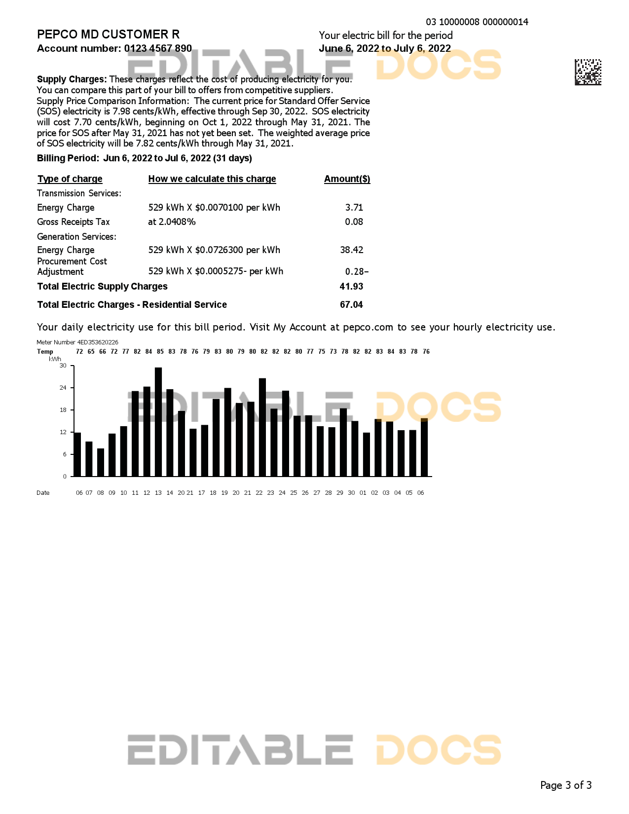 This USA Maryland Pepco utility official check (in Microsoft Word and Pdf format) template is perfect for those who need to verify their PayPal, Facebook, Skrill, Neteller, Payoneer, Payza, eBay, or Bitcoin wallet accounts. It is fully editable, as it is a Word document file with a high-quality bill template. Also, it is easy to customize, and fonts are included to type your own characteristics. So, you can edit this template and put any name, address, license number, Id number, birth date, height, weight, expiration date, etc naturally. This Microsoft Word template is easy to Editing. To modify this Word template file you will need text editing software such as Microsoft Word. Be alert! Never trust spamming services and use low-quality templates, your account may get suspended forever.