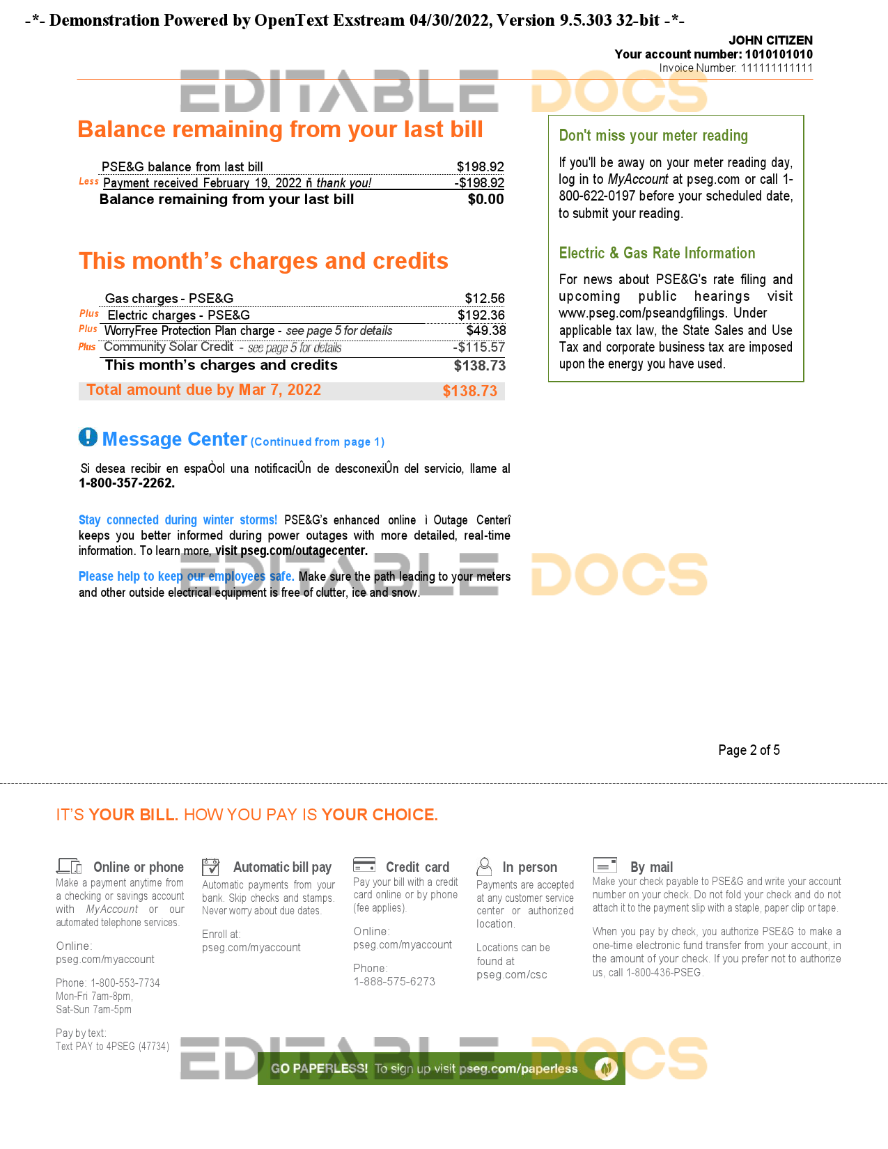 This USA New York PSEG utility utility official check (in Microsoft Word and Pdf format) template is perfect for those who need to verify their PayPal, Facebook, Skrill, Neteller, Payoneer, Payza, eBay, or Bitcoin wallet accounts. It is fully editable, as it is a Word document file with a high-quality bill template. Also, it is easy to customize, and fonts are included to type your own characteristics. So, you can edit this template and put any name, address, license number, Id number, birth date, height, weight, expiration date, etc naturally. This Microsoft Word template is easy to Editing. To modify this Word template file you will need text editing software such as Microsoft Word. Be alert! Never trust spamming services and use low-quality templates, your account may get suspended forever.