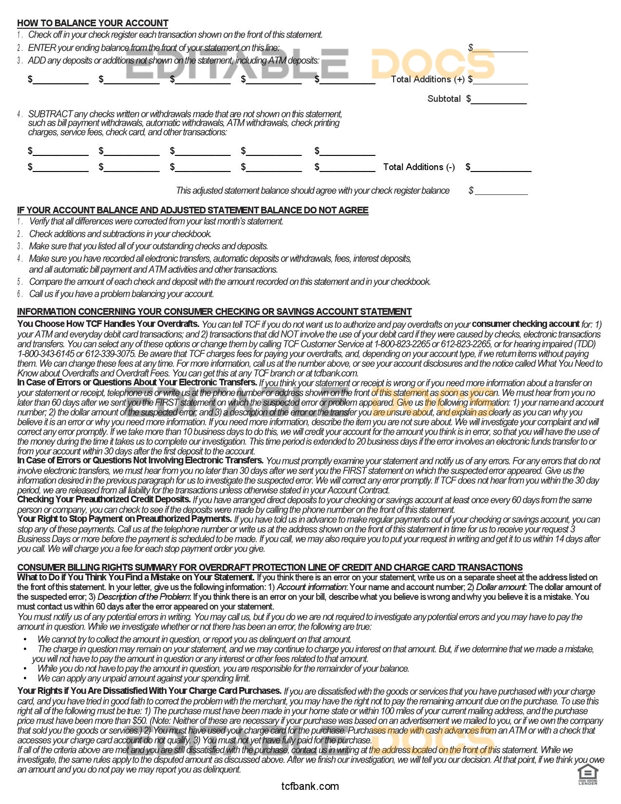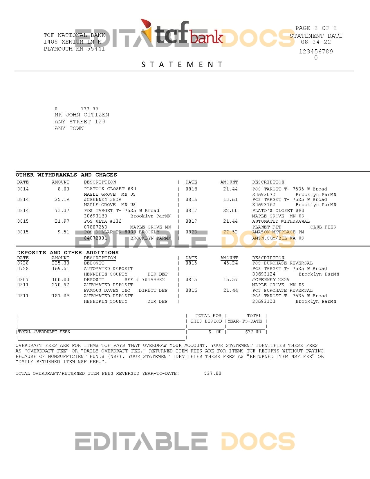USA TCF bank statement, Word and PDF template, 3 pages USA TCF bank statement, Word and PDF template, 3 pages