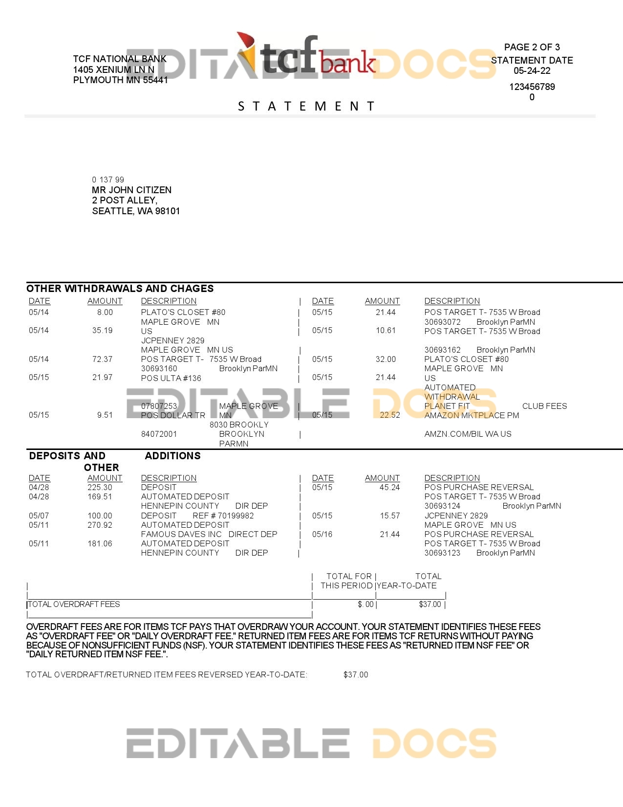 Once you make your purchase, you’ll be able to immediately download the USA TCF bank statement.doc file and fonts.