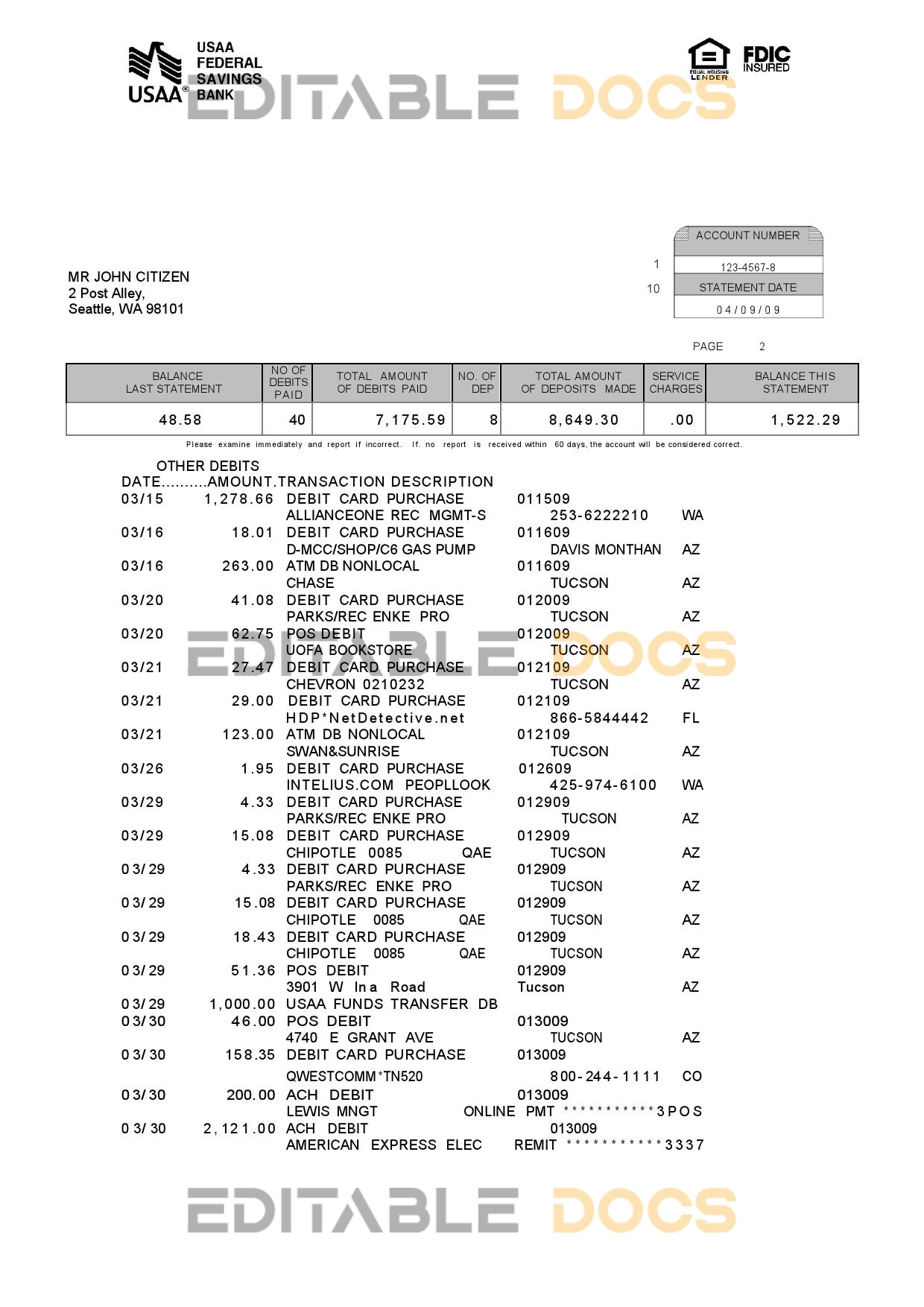 Once you make your purchase, you’ll be able to immediately download the USA USAA bank statement.doc file and fonts.