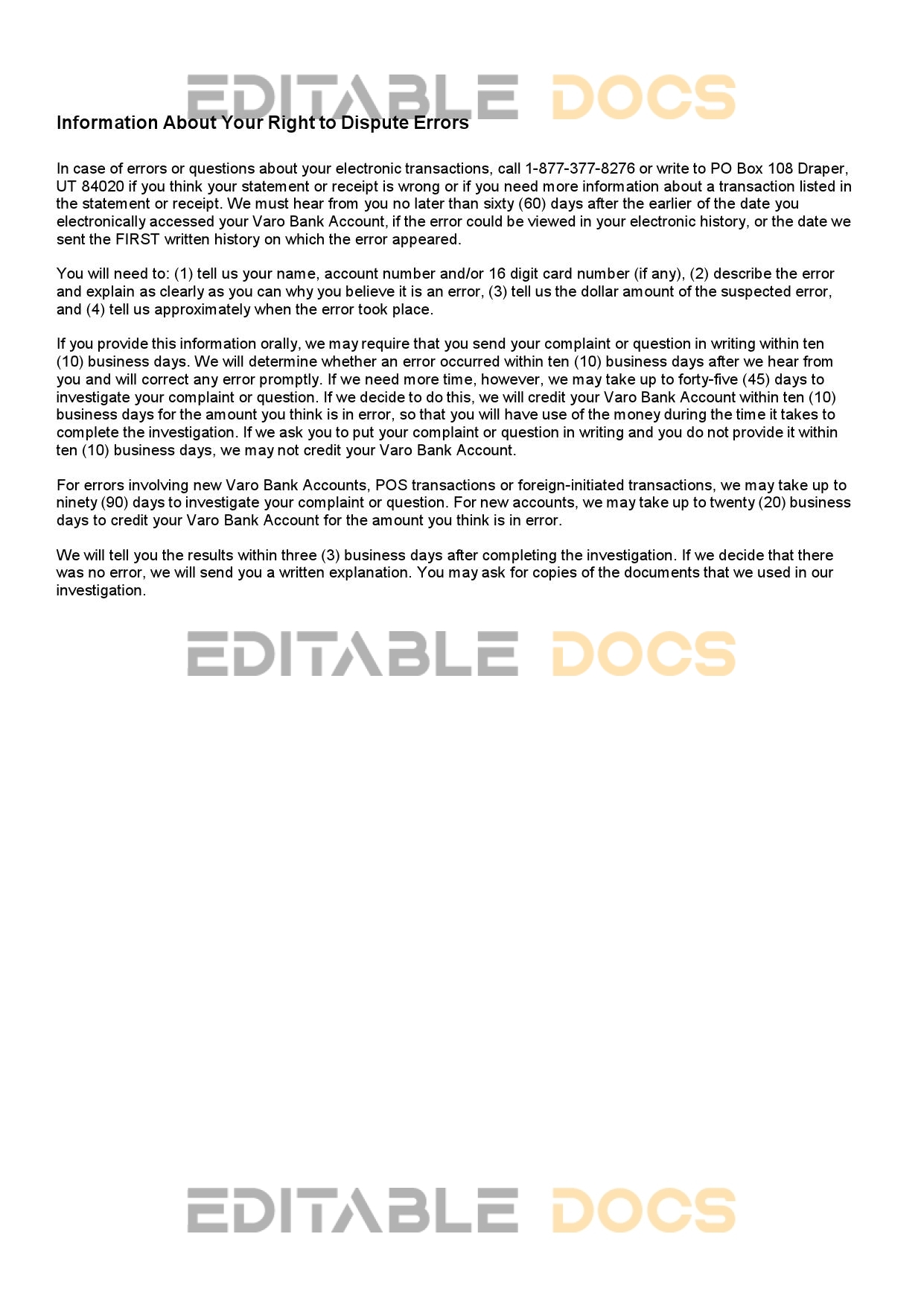 Once you make your purchase, you’ll be able to immediately download the USA Varo bank statement.doc file and fonts.