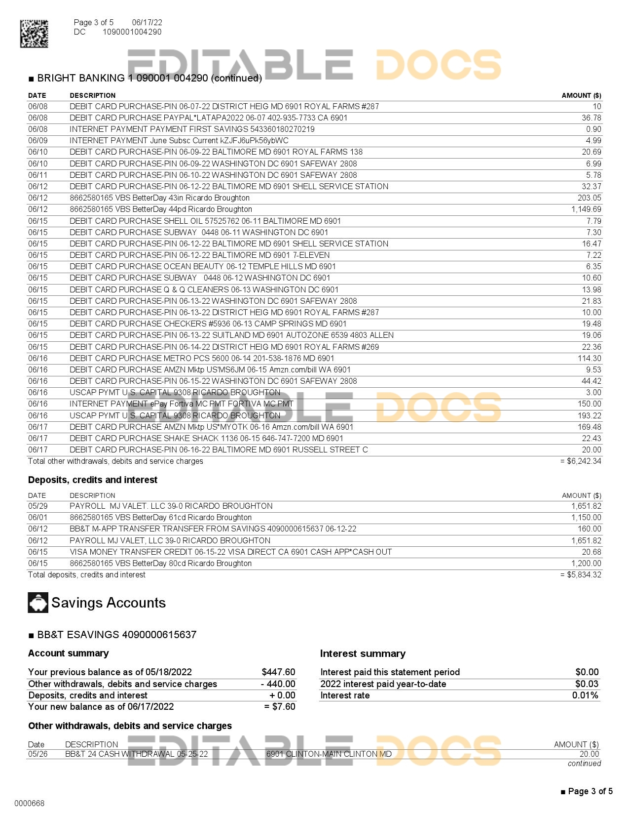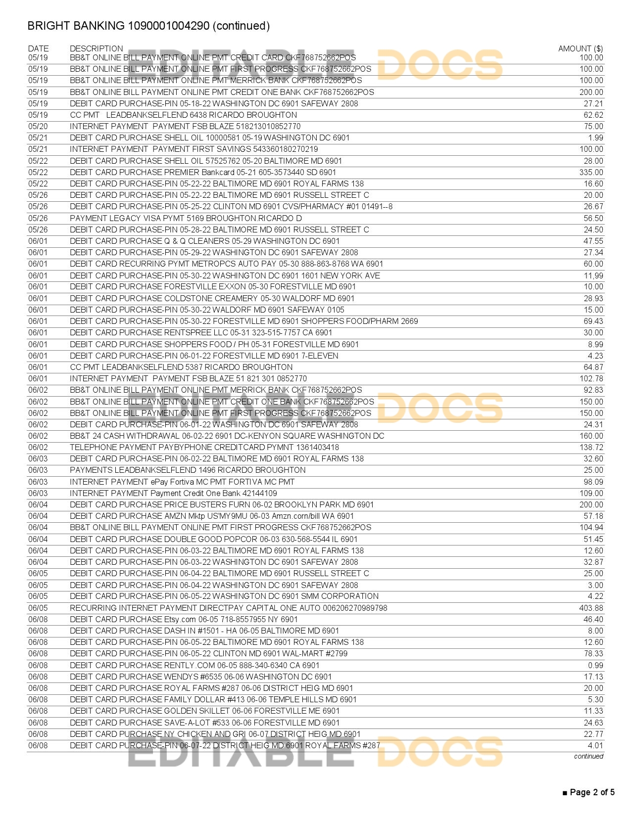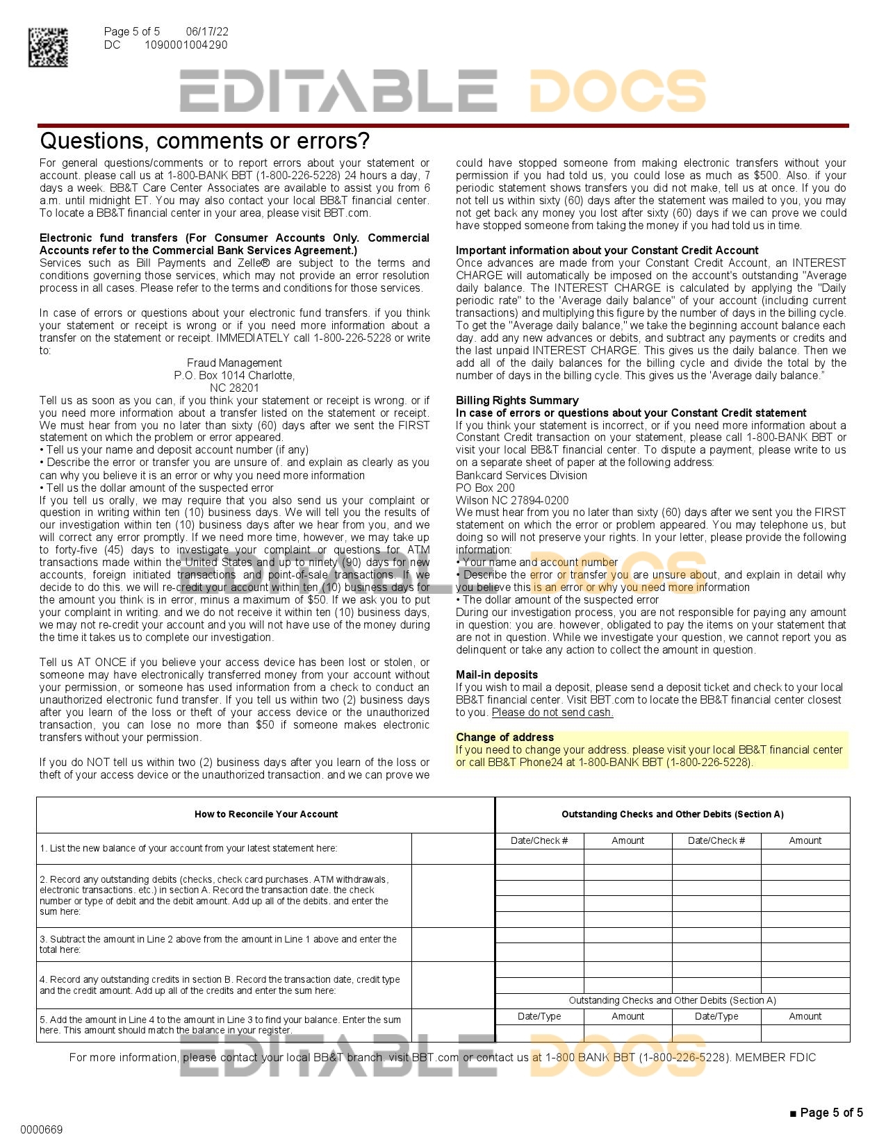 Once you make your purchase, you’ll be able to immediately download the USA Washington BB&T bank statement.doc file and fonts.