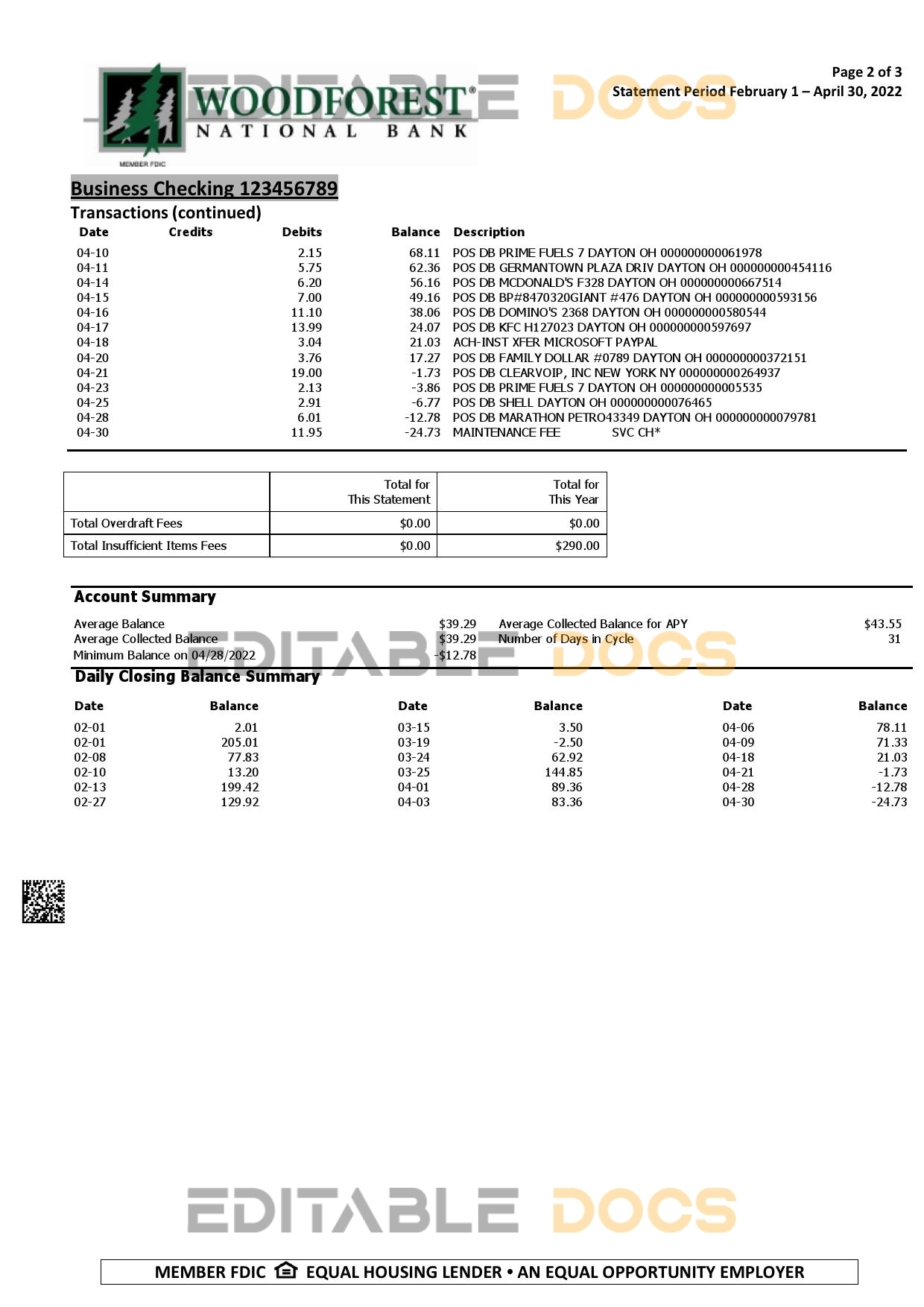Once you make your purchase, you’ll be able to immediately download the USA Woodforest bank statement.doc file and fonts.